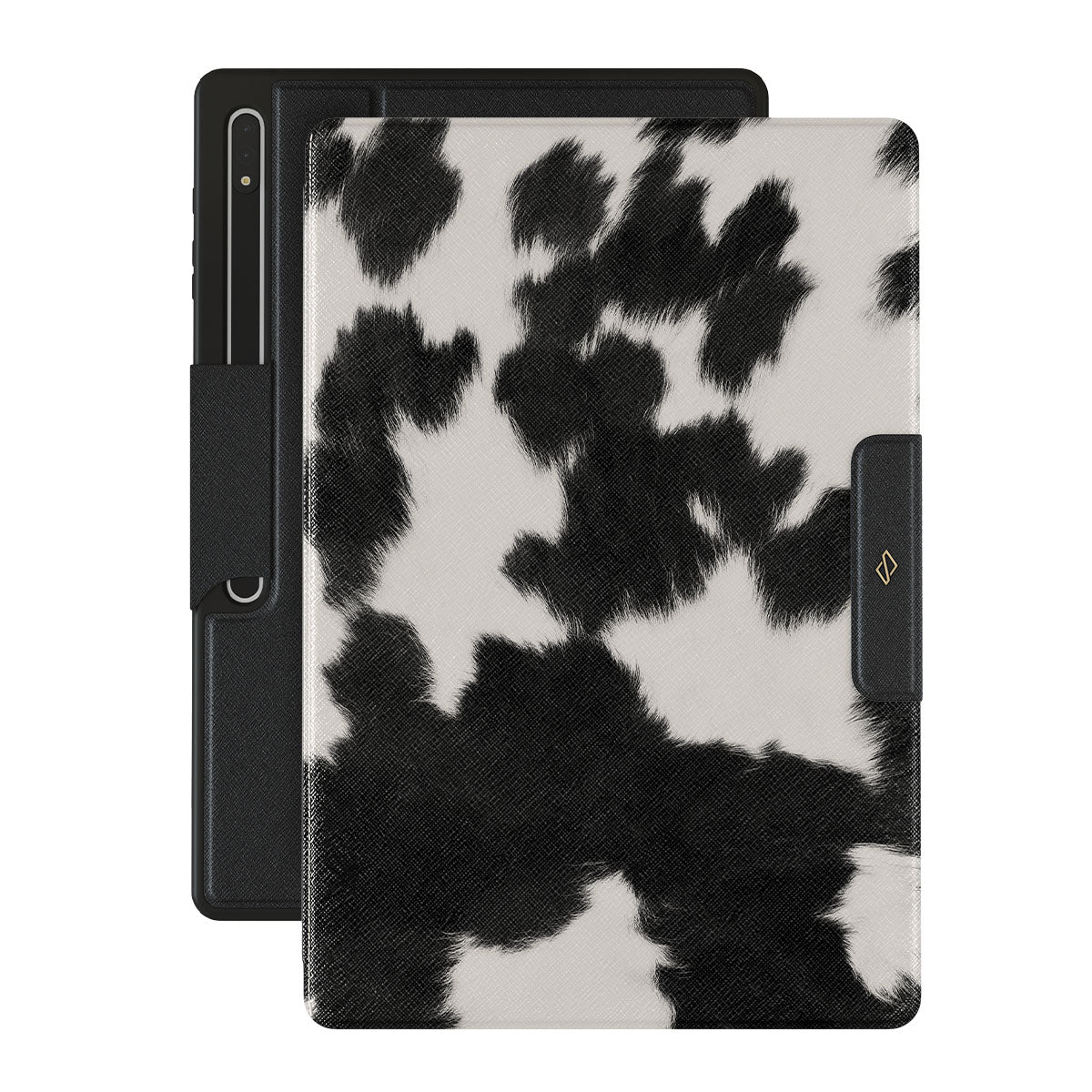 - Přední strana má magnet, který ji drží v uzavřené pozici.