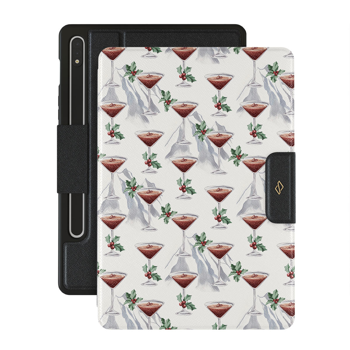 Typické pro tento motiv: koktejlové sklenice, martini, listy cesmíny