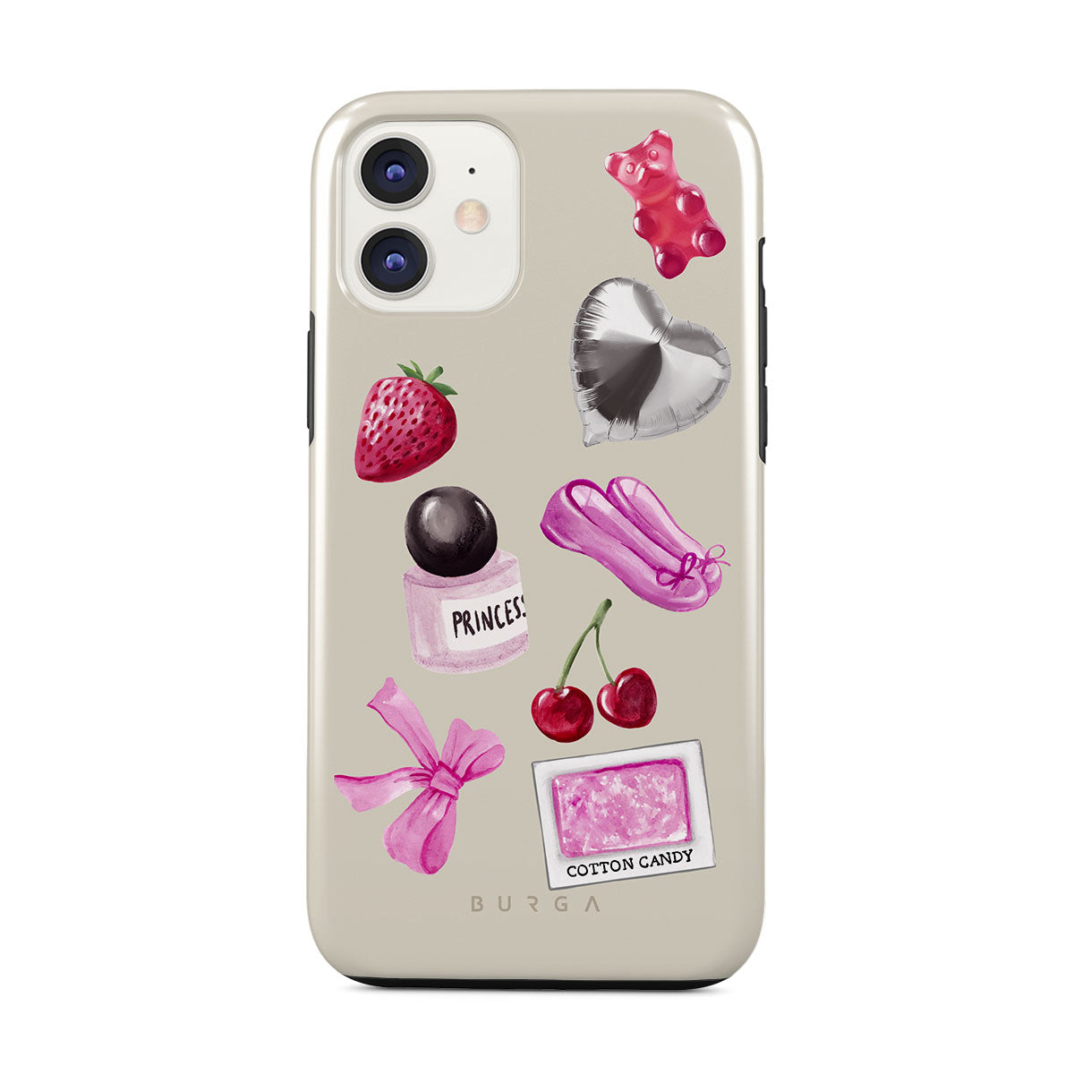 Typické pro tento motiv: růžovou mašli, stříbrný balónek ve tvaru srdce, lahvičku parfému, jahodu, třešně, růžové baletní střevíčky, samolepku cukrové vaty, růžového gumového medvídka.