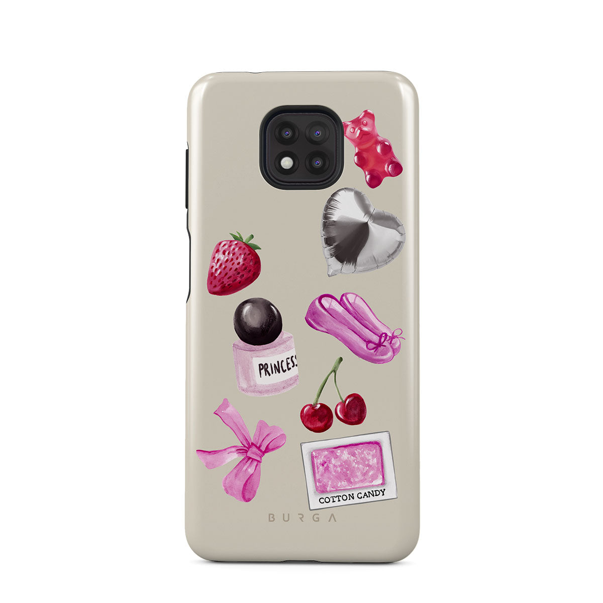 Typické pro tento motiv: růžovou mašli, stříbrný balónek ve tvaru srdce, lahvičku parfému, jahodu, třešně, růžové baletní střevíčky, samolepku cukrové vaty, růžového gumového medvídka.