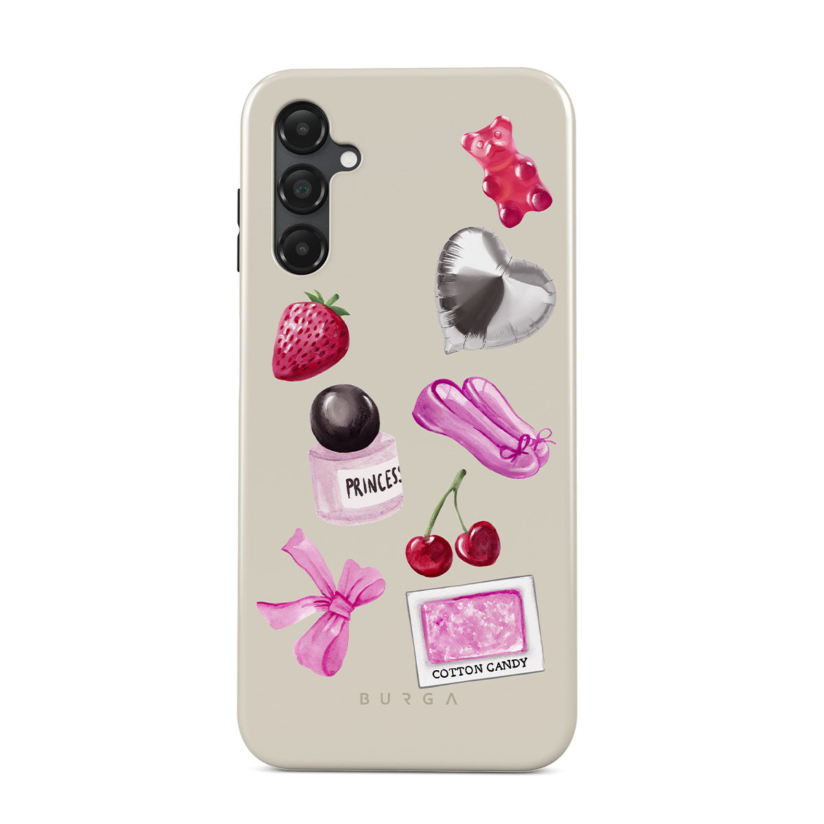 Typické pro tento motiv: růžovou mašli, stříbrný balónek ve tvaru srdce, lahvičku parfému, jahodu, třešně, růžové baletní střevíčky, samolepku cukrové vaty, růžového gumového medvídka.