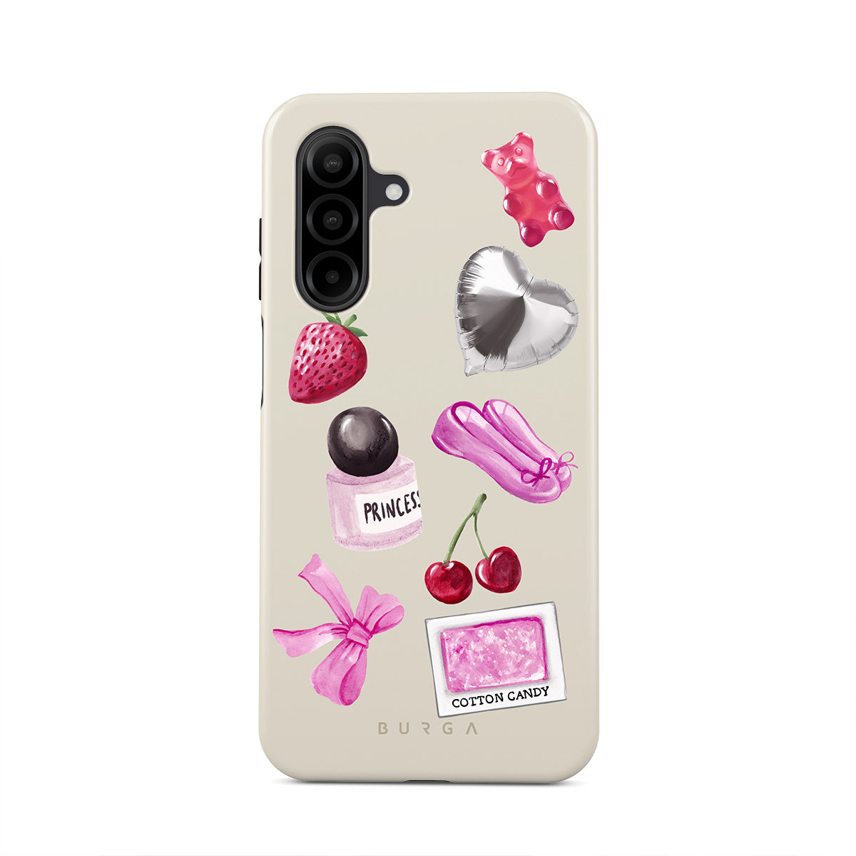 Typické pro tento motiv: růžovou mašli, stříbrný balónek ve tvaru srdce, lahvičku parfému, jahodu, třešně, růžové baletní střevíčky, samolepku cukrové vaty, růžového gumového medvídka.