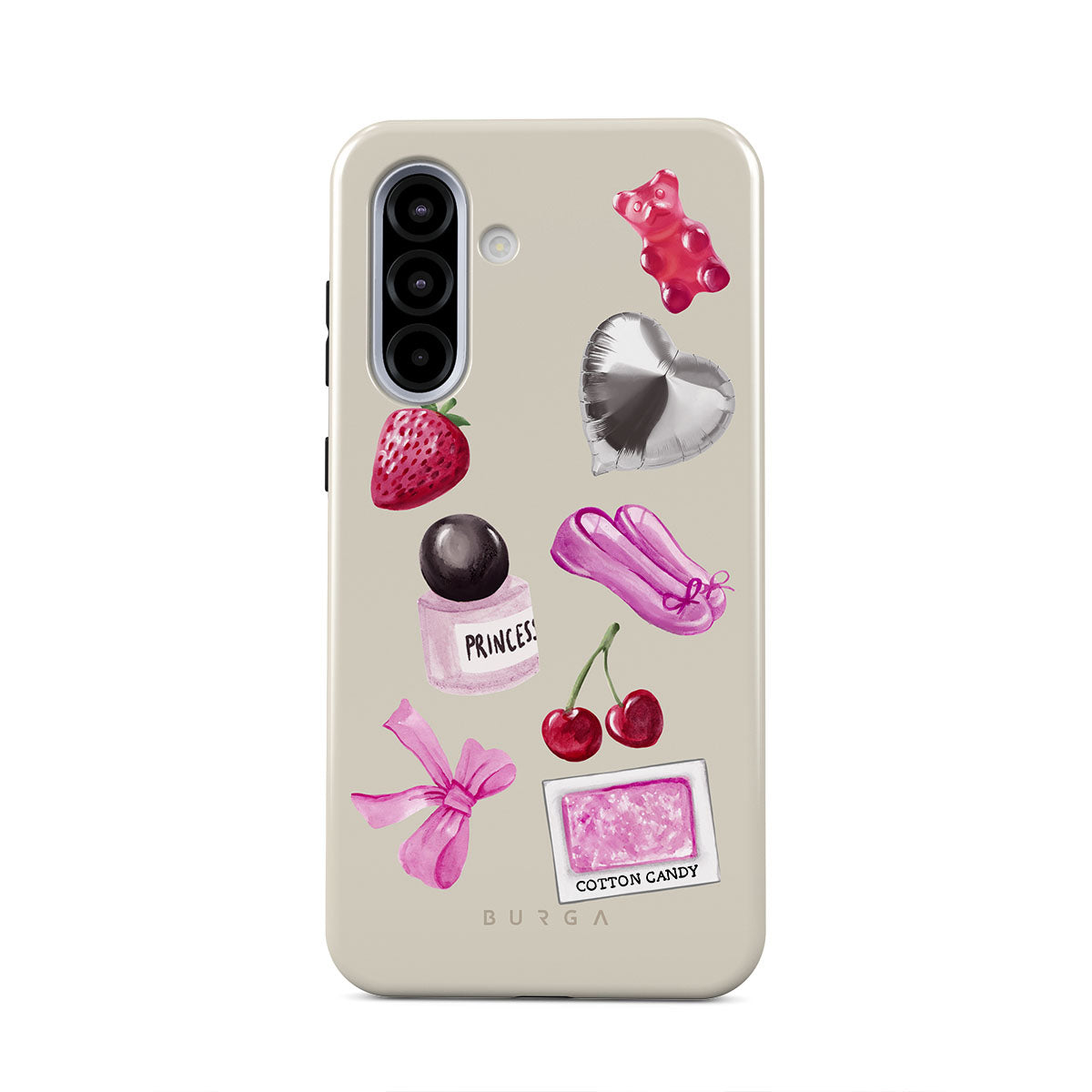 Typické pro tento motiv: růžovou mašli, stříbrný balónek ve tvaru srdce, lahvičku parfému, jahodu, třešně, růžové baletní střevíčky, samolepku cukrové vaty, růžového gumového medvídka.