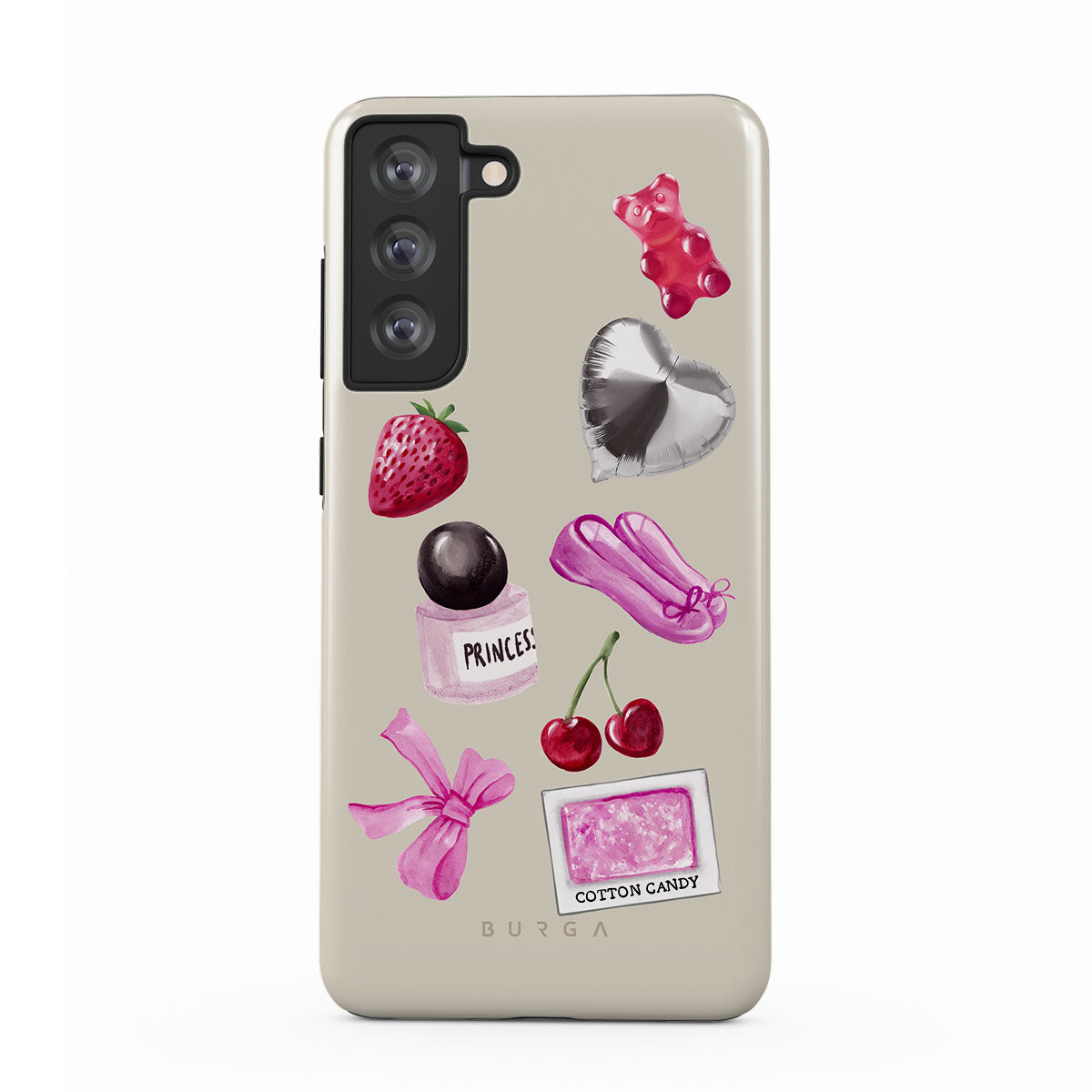Typické pro tento motiv: růžovou mašli, stříbrný balónek ve tvaru srdce, lahvičku parfému, jahodu, třešně, růžové baletní střevíčky, samolepku cukrové vaty, růžového gumového medvídka.