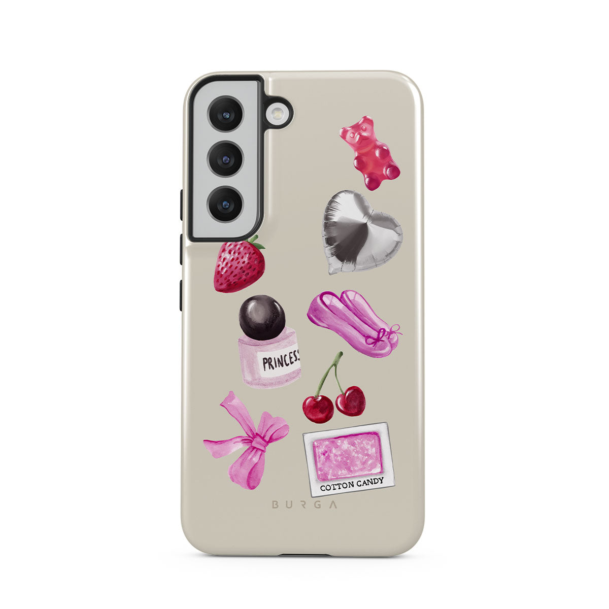 Typické pro tento motiv: růžovou mašli, stříbrný balónek ve tvaru srdce, lahvičku parfému, jahodu, třešně, růžové baletní střevíčky, samolepku cukrové vaty, růžového gumového medvídka.