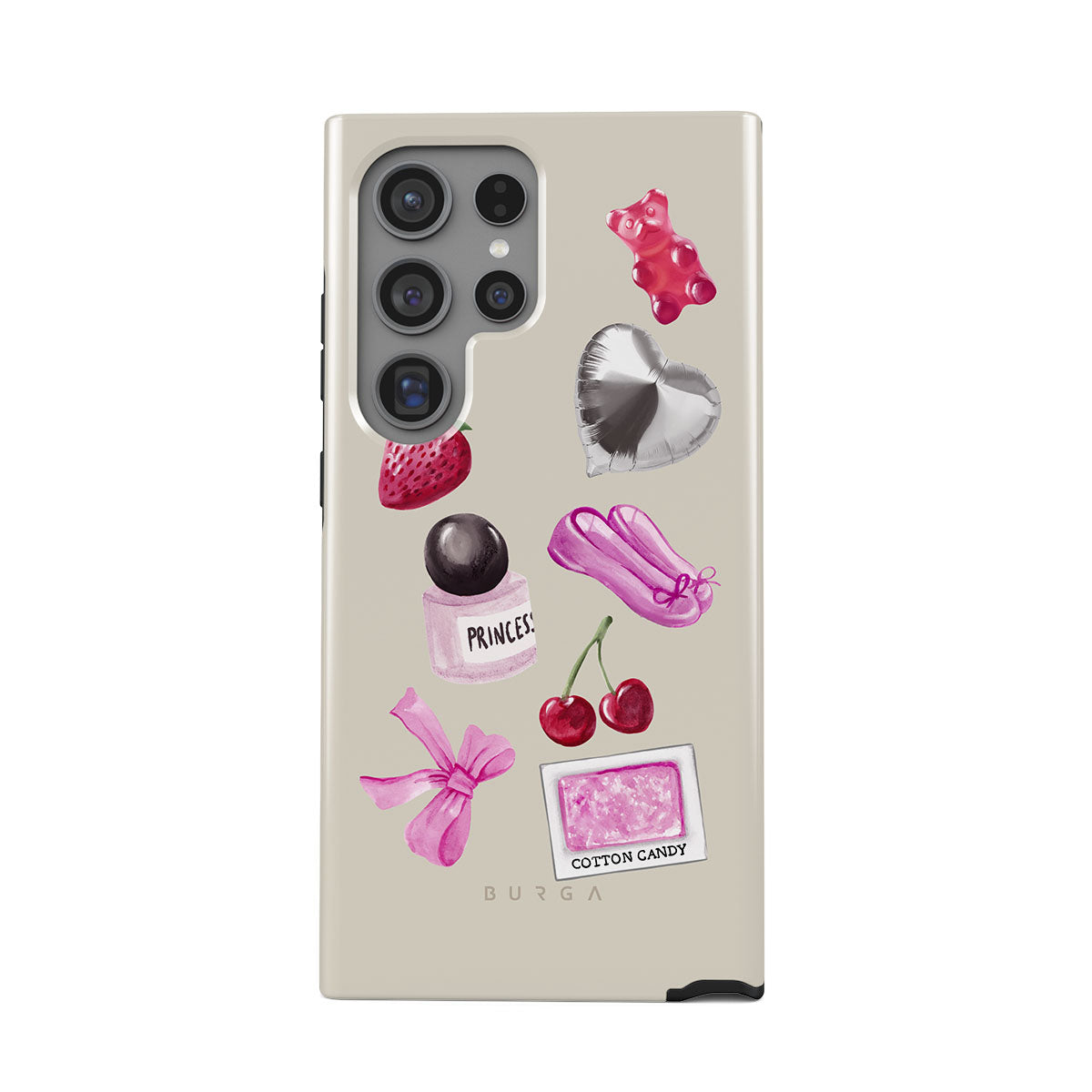 Typické pro tento motiv: růžovou mašli, stříbrný balónek ve tvaru srdce, lahvičku parfému, jahodu, třešně, růžové baletní střevíčky, samolepku cukrové vaty, růžového gumového medvídka.