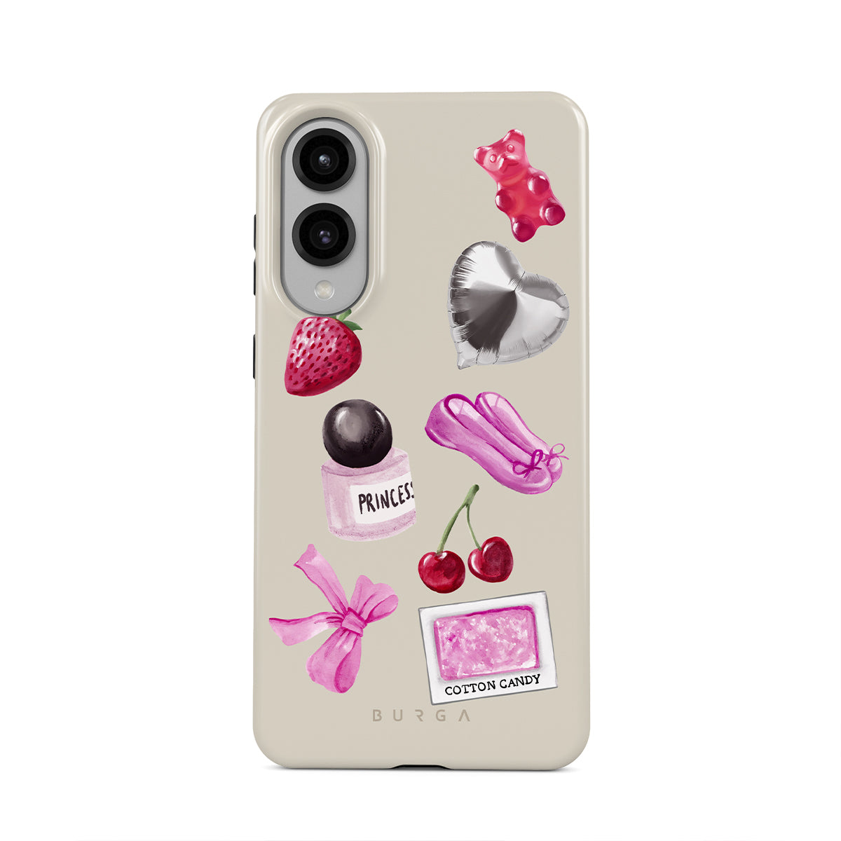 Typické pro tento motiv: růžovou mašli, stříbrný balónek ve tvaru srdce, lahvičku parfému, jahodu, třešně, růžové baletní střevíčky, samolepku cukrové vaty, růžového gumového medvídka.