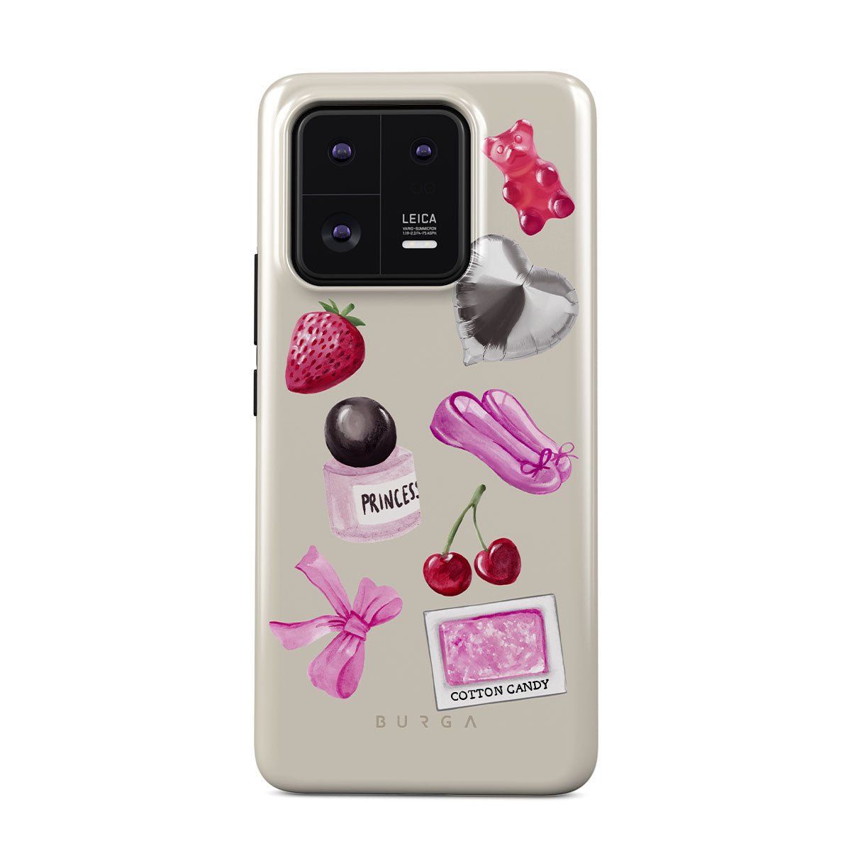Typické pro tento motiv: růžovou mašli, stříbrný balónek ve tvaru srdce, lahvičku parfému, jahodu, třešně, růžové baletní střevíčky, samolepku cukrové vaty, růžového gumového medvídka.