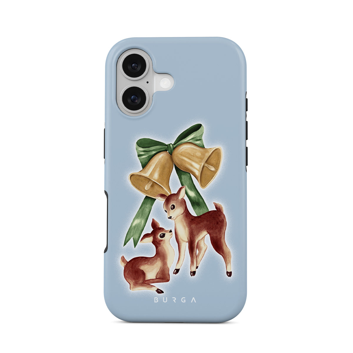 Typické pro tento motiv: vintage sob, vánoční zvonky, zlaté zvonky, retro ilustrace soba, malý jelen, světle modré pozadí