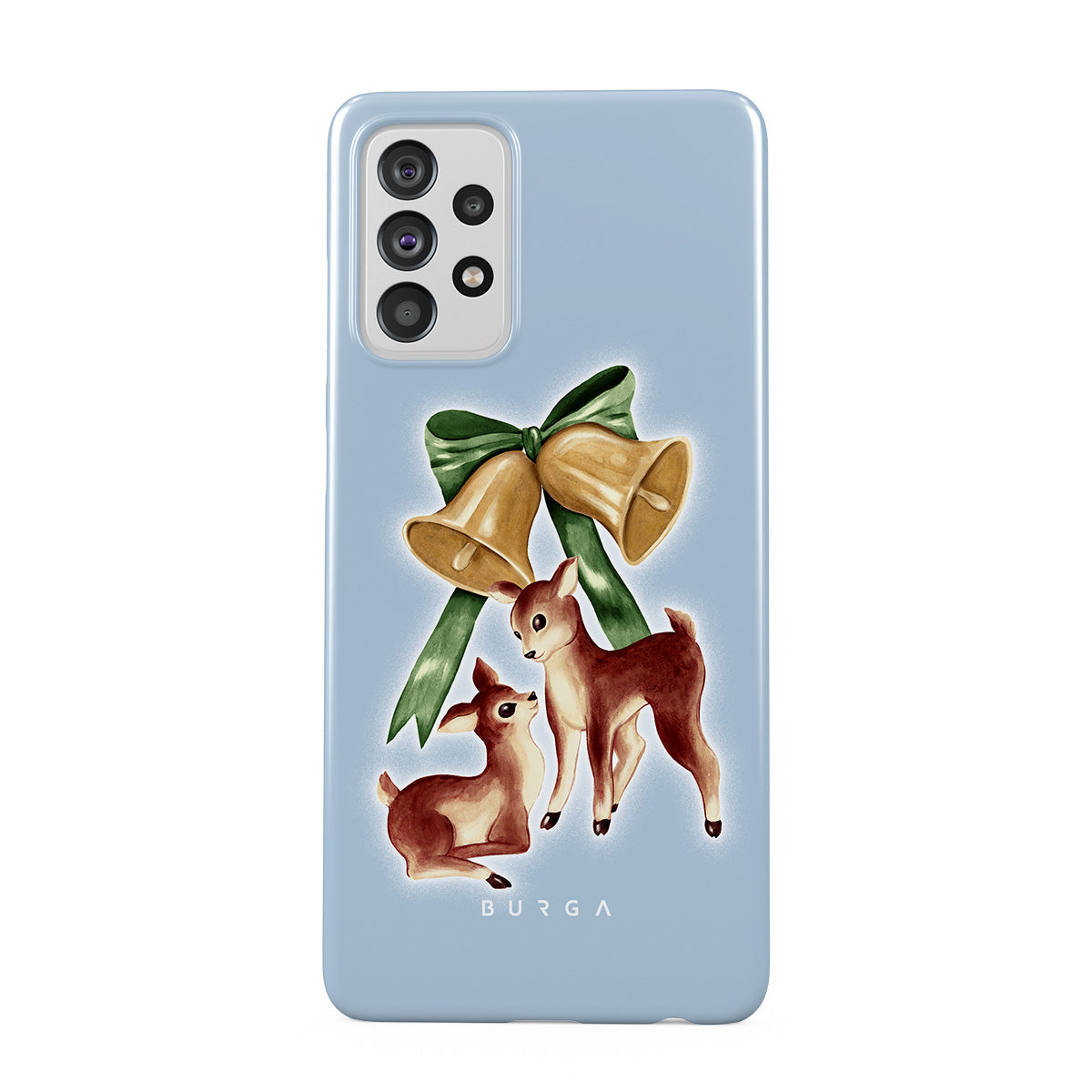 Typické pro tento motiv: vintage sob, vánoční zvonky, zlaté zvonky, retro ilustrace soba, malý jelen, světle modré pozadí