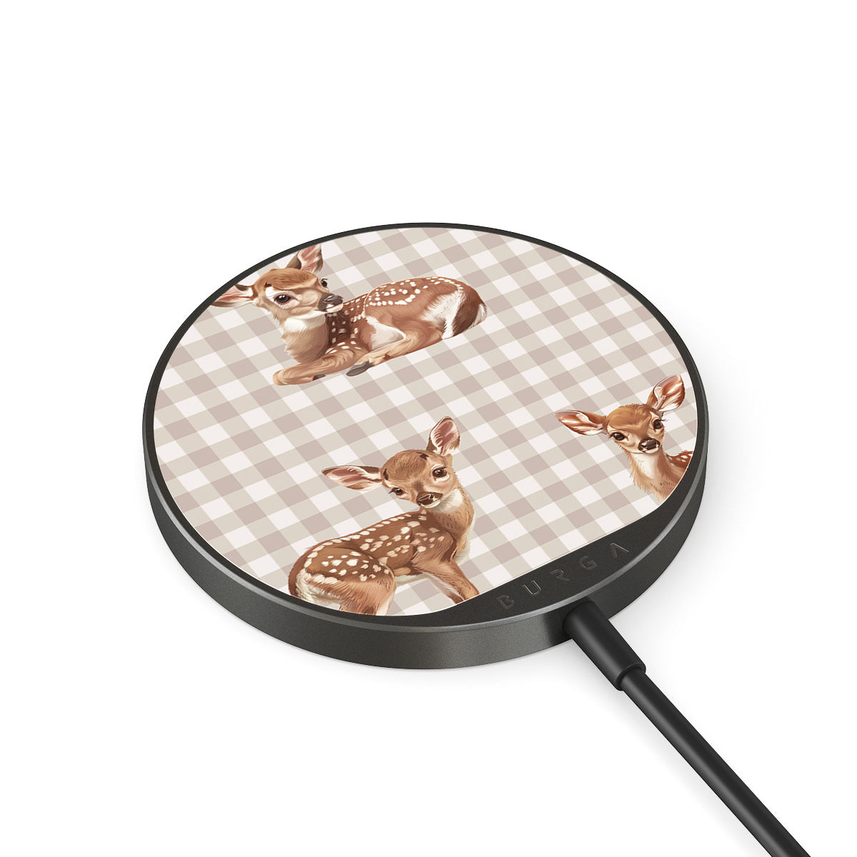 Integrovaný kabel s délkou 1,5 m usnadňuje nabíjení, ať už jsi v kanceláři, odpočíváš na pohovce nebo zabíjíš čas v letištním salónku. Skleněná zadní část BURGA ti navíc nabízí přes 500 potisků, ze kterých můžeš vybírat tak, aby tvá nabíječka vypadala tak dobře jako tvůj kryt.