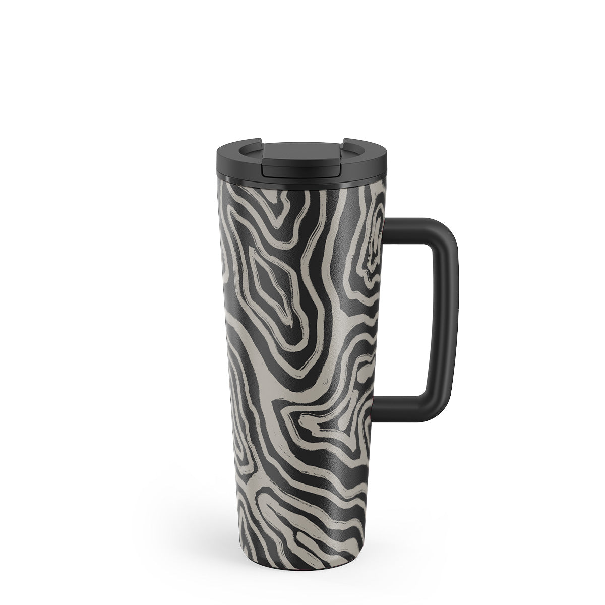 Ze všech úhlů jako dělané pro život, jaký je. Zúžená spodní část pasuje do většiny držáků na nápoje v autě. Velké držadlo ti dodá pocit stability, když jsi na cestách. Neklouzající gumová podložka chrání stůl a předchází převržení.