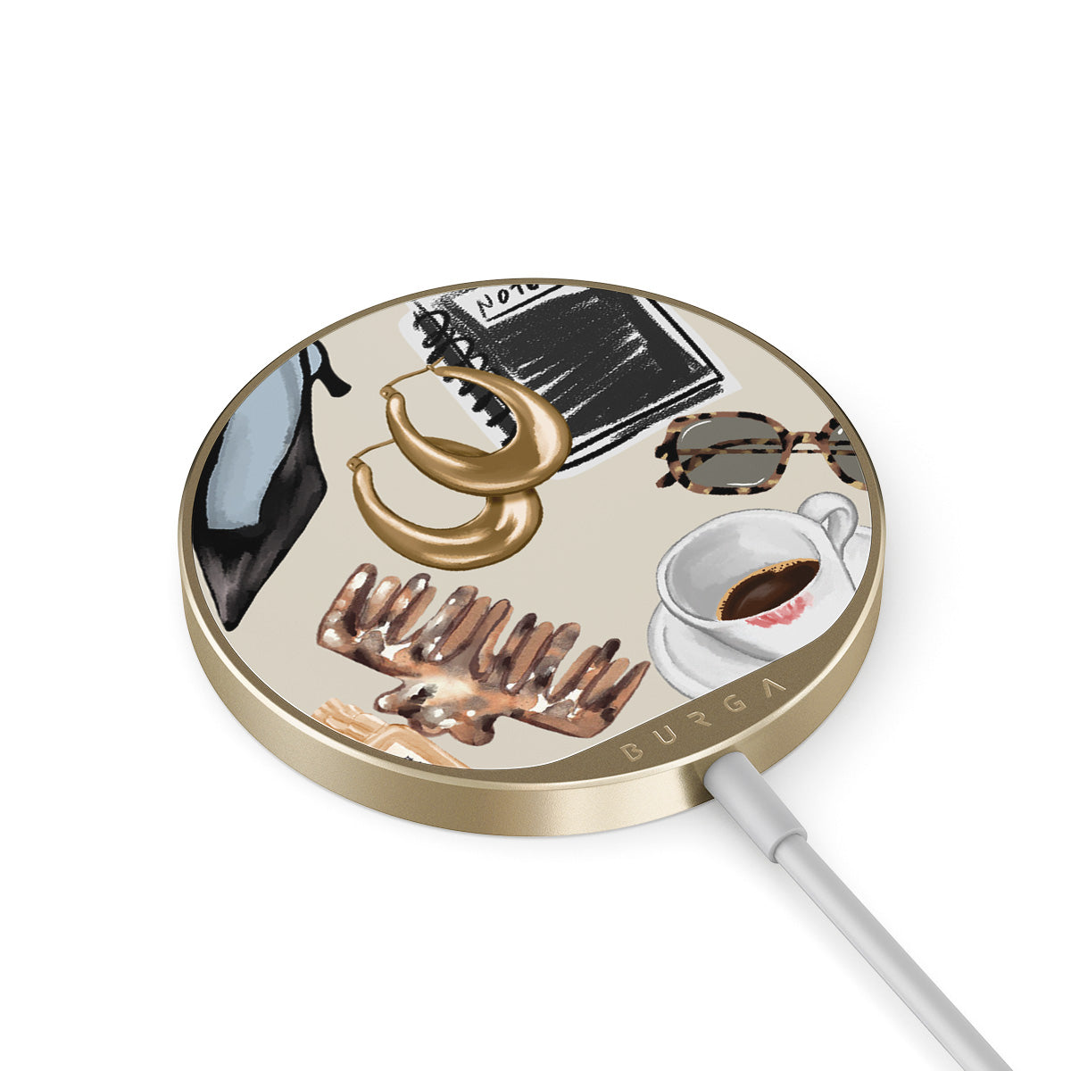 Integrovaný kabel s délkou 1,5 m usnadňuje nabíjení, ať už jsi v kanceláři, odpočíváš na pohovce nebo zabíjíš čas v letištním salónku. Skleněná zadní část BURGA ti navíc nabízí přes 500 potisků, ze kterých můžeš vybírat tak, aby tvá nabíječka vypadala tak dobře jako tvůj kryt.