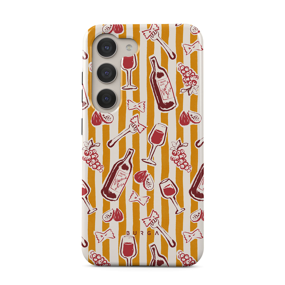 Typické pro tento motiv: ovoce, fíky, hrozny, vidličky, těstoviny, víno, sklenici, proužky.