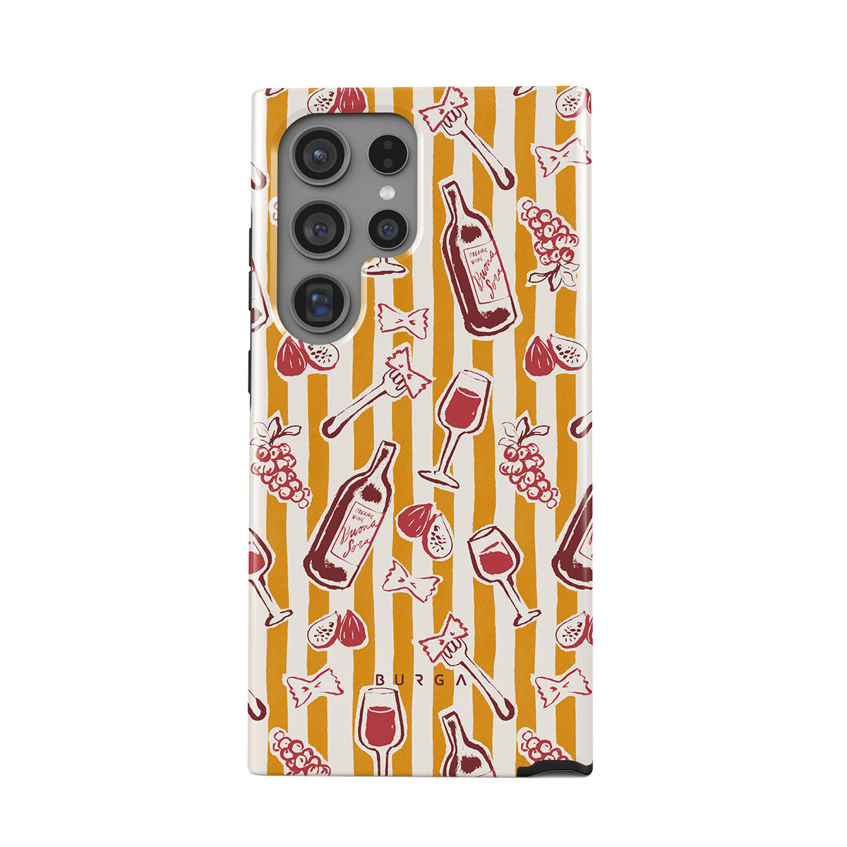 Typické pro tento motiv: ovoce, fíky, hrozny, vidličky, těstoviny, víno, sklenici, proužky.
