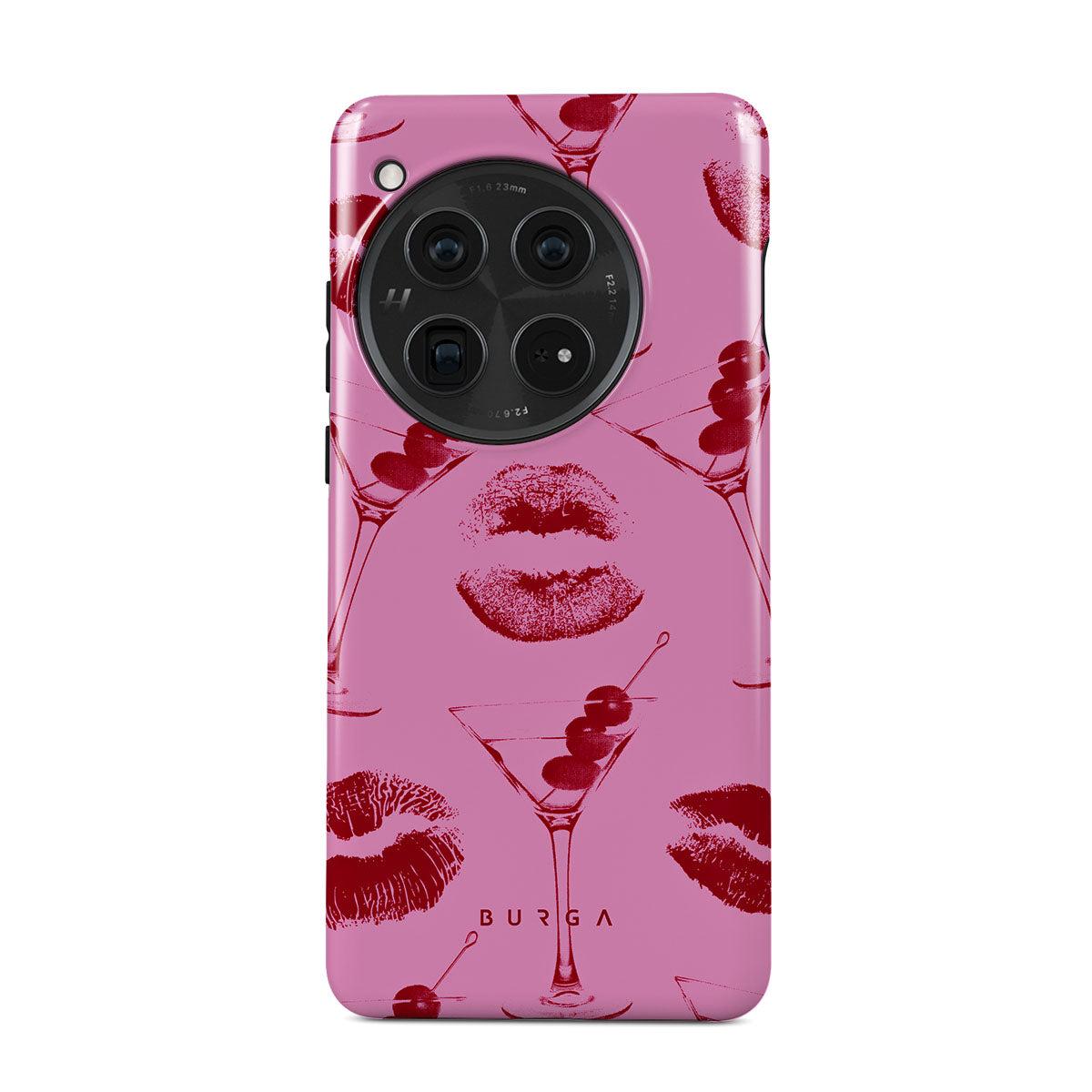 Główne elementy projektu: czerwone usta, pocałunki, kieliszki koktajlowe, martini.