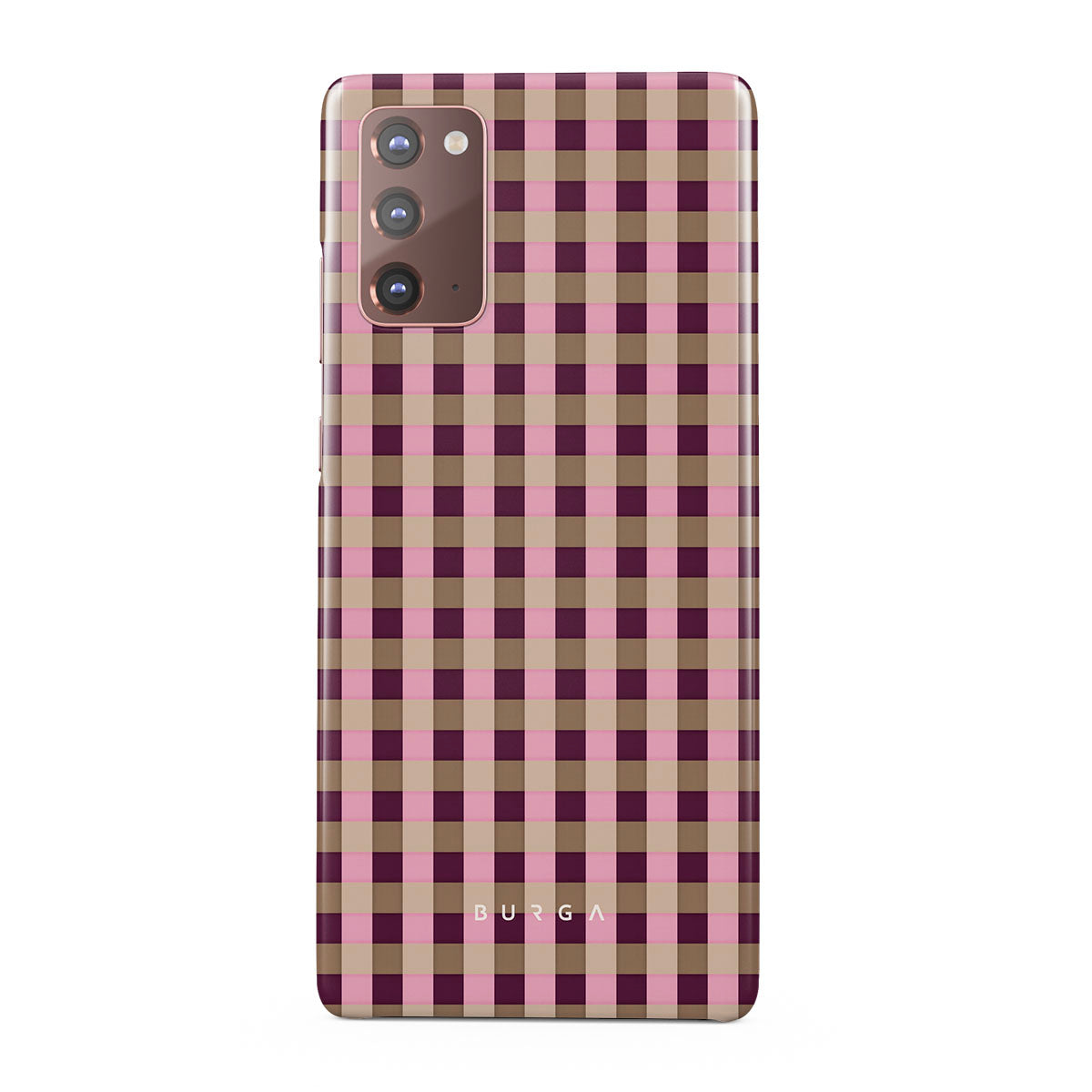 Typické pro tento motiv: růžový a bordó kostkovaný vzor v moderním stylu.