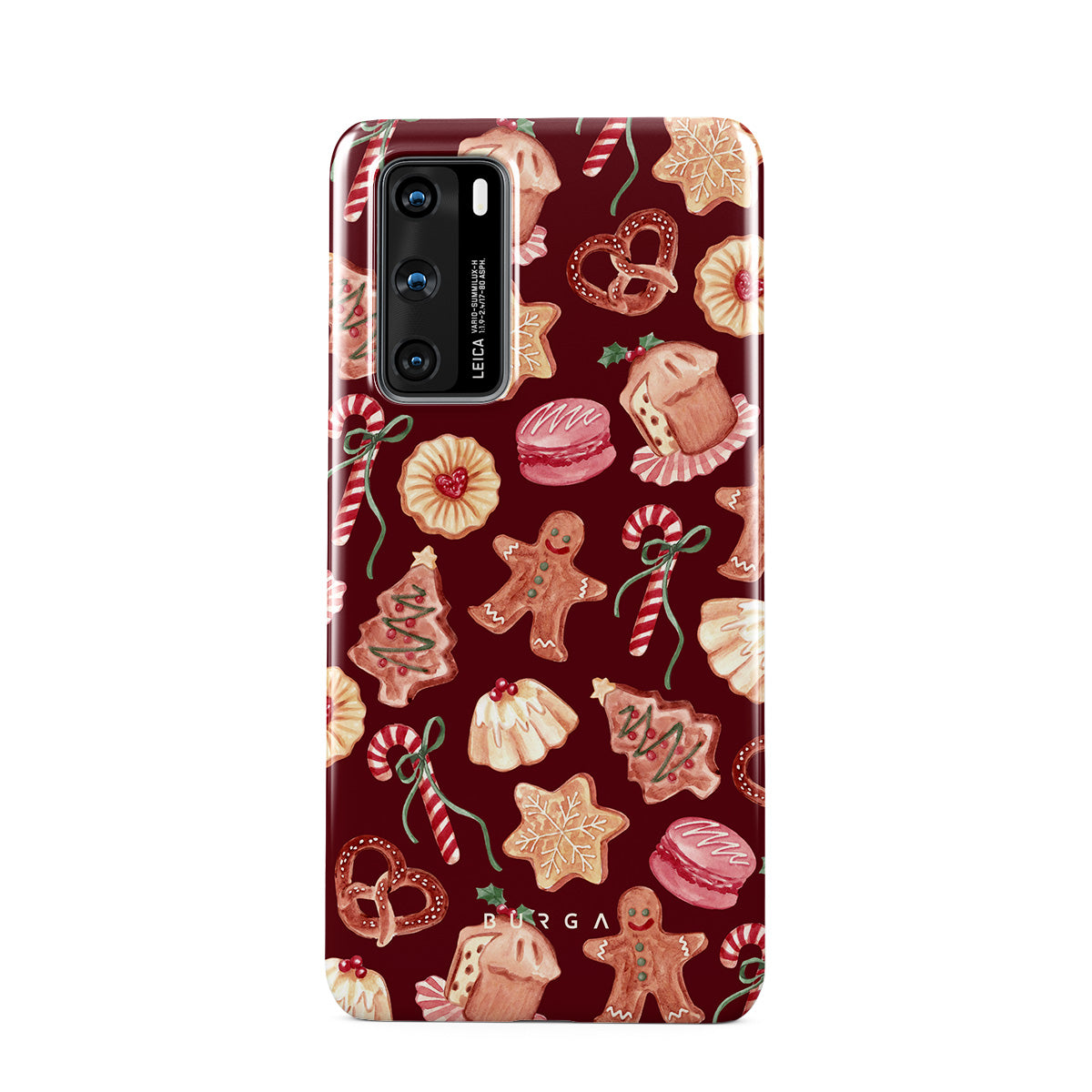 Typické pro tento motiv: vánoční sušenky, perníčky, cukrové hole, mátové bonbóny, sváteční sladkosti, burgundské červené pozadí