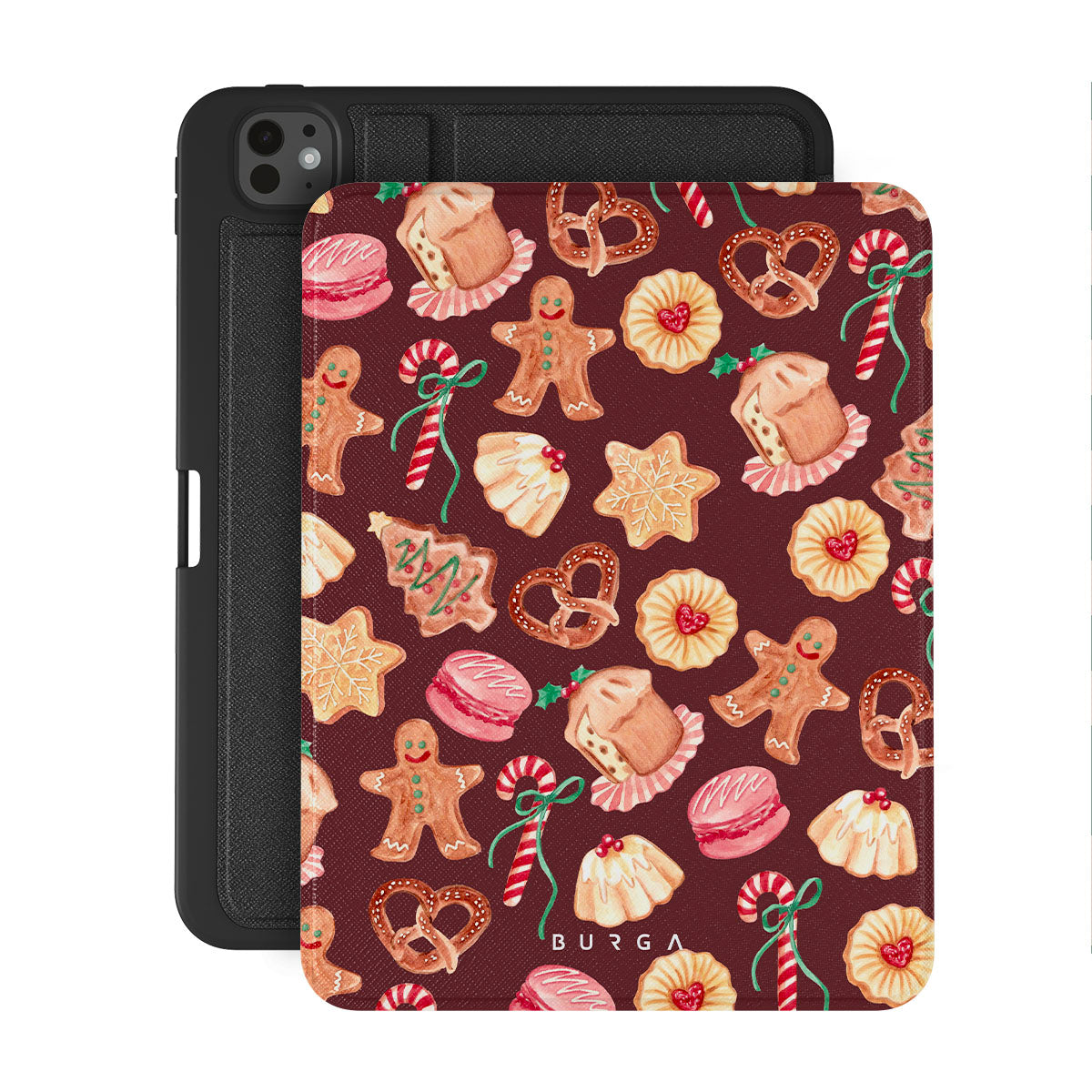 Typické pro tento motiv: vánoční sušenky, perníčky, cukrové hole, mátové bonbóny, sváteční sladkosti, burgundské červené pozadí