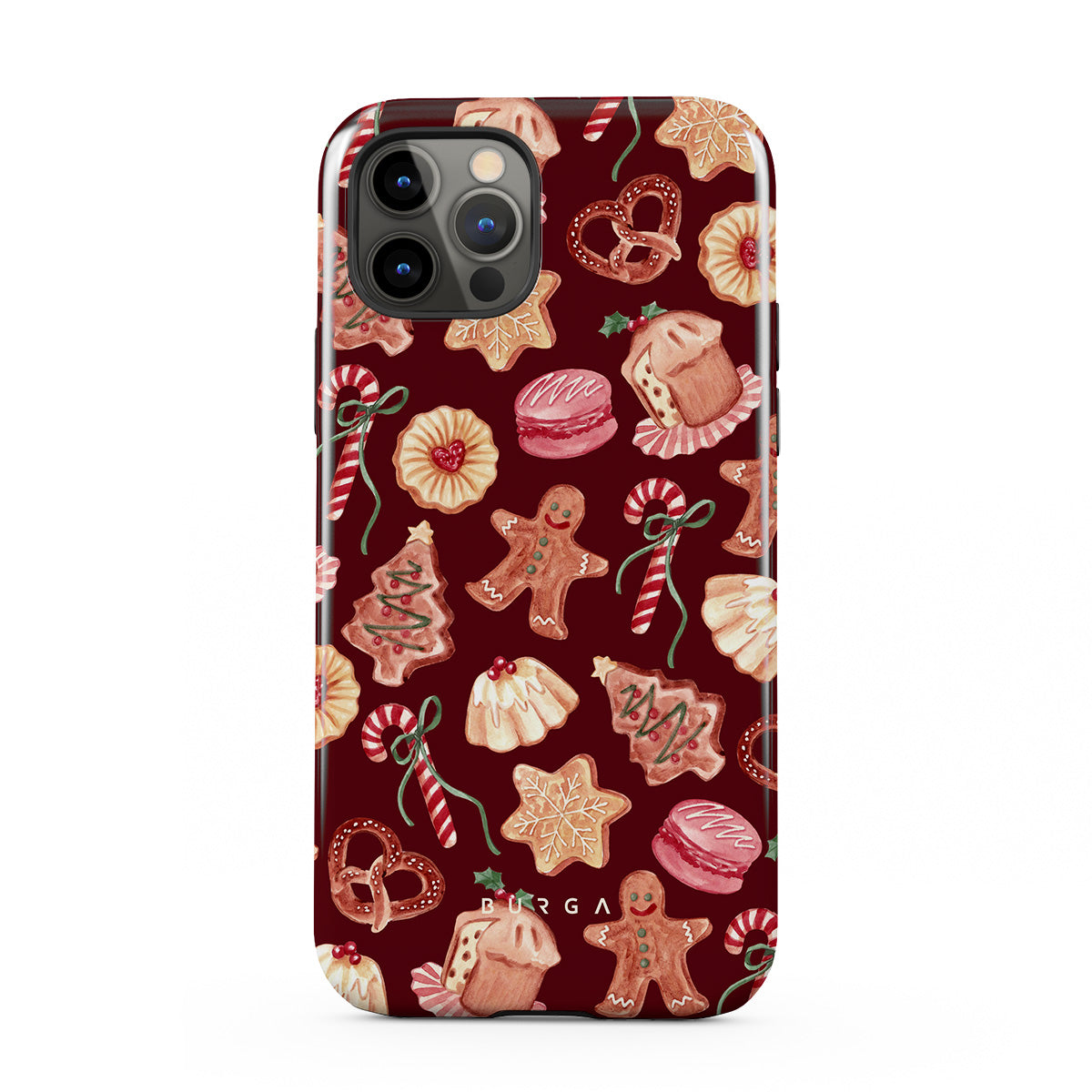 Typické pro tento motiv: vánoční sušenky, perníčky, cukrové hole, mátové bonbóny, sváteční sladkosti, burgundské červené pozadí