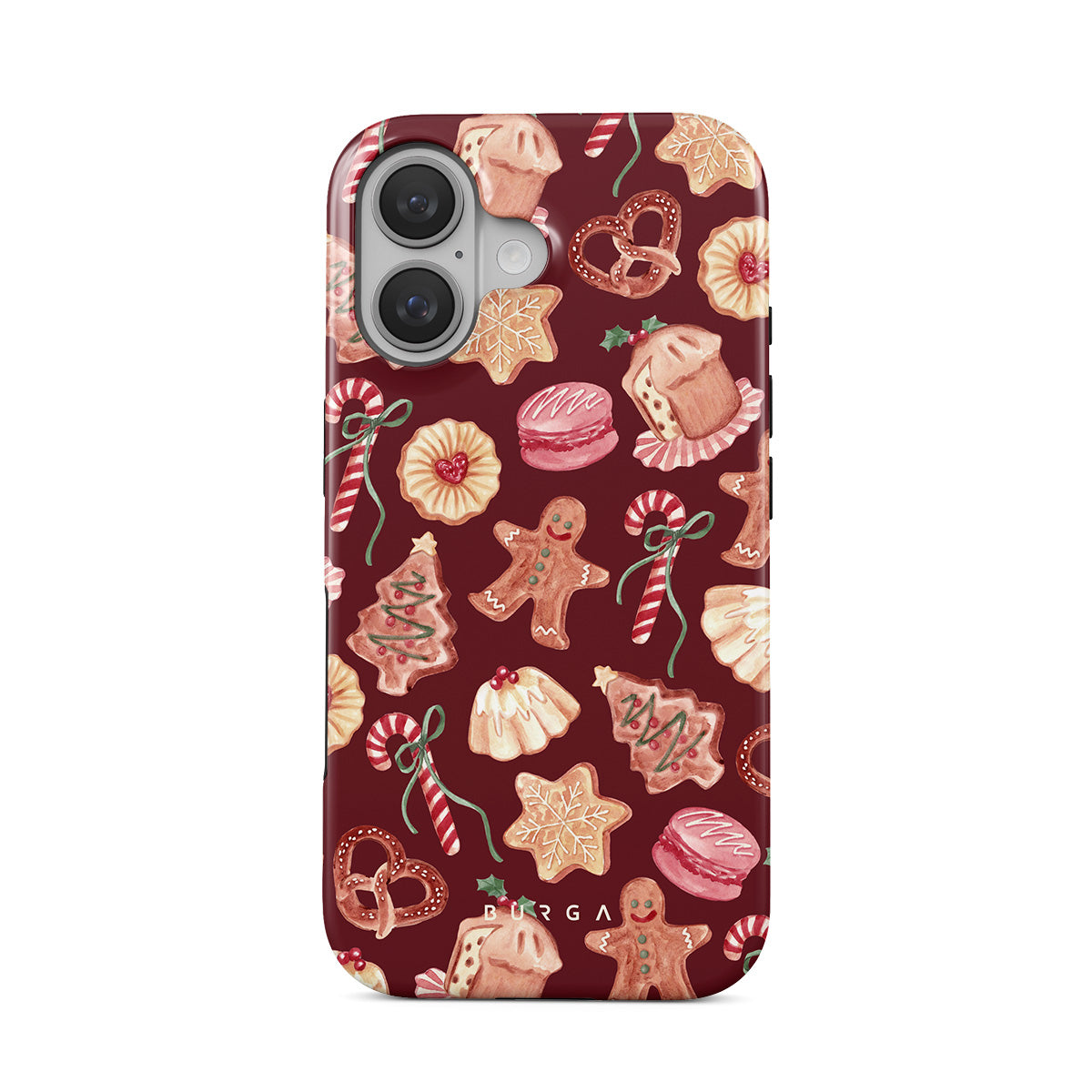 Typické pro tento motiv: vánoční sušenky, perníčky, cukrové hole, mátové bonbóny, sváteční sladkosti, burgundské červené pozadí