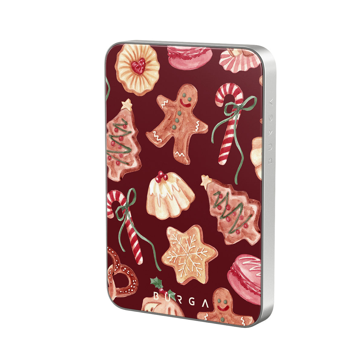 Typické pro tento motiv: vánoční sušenky, perníčky, cukrové hole, mátové bonbóny, sváteční sladkosti, burgundské červené pozadí