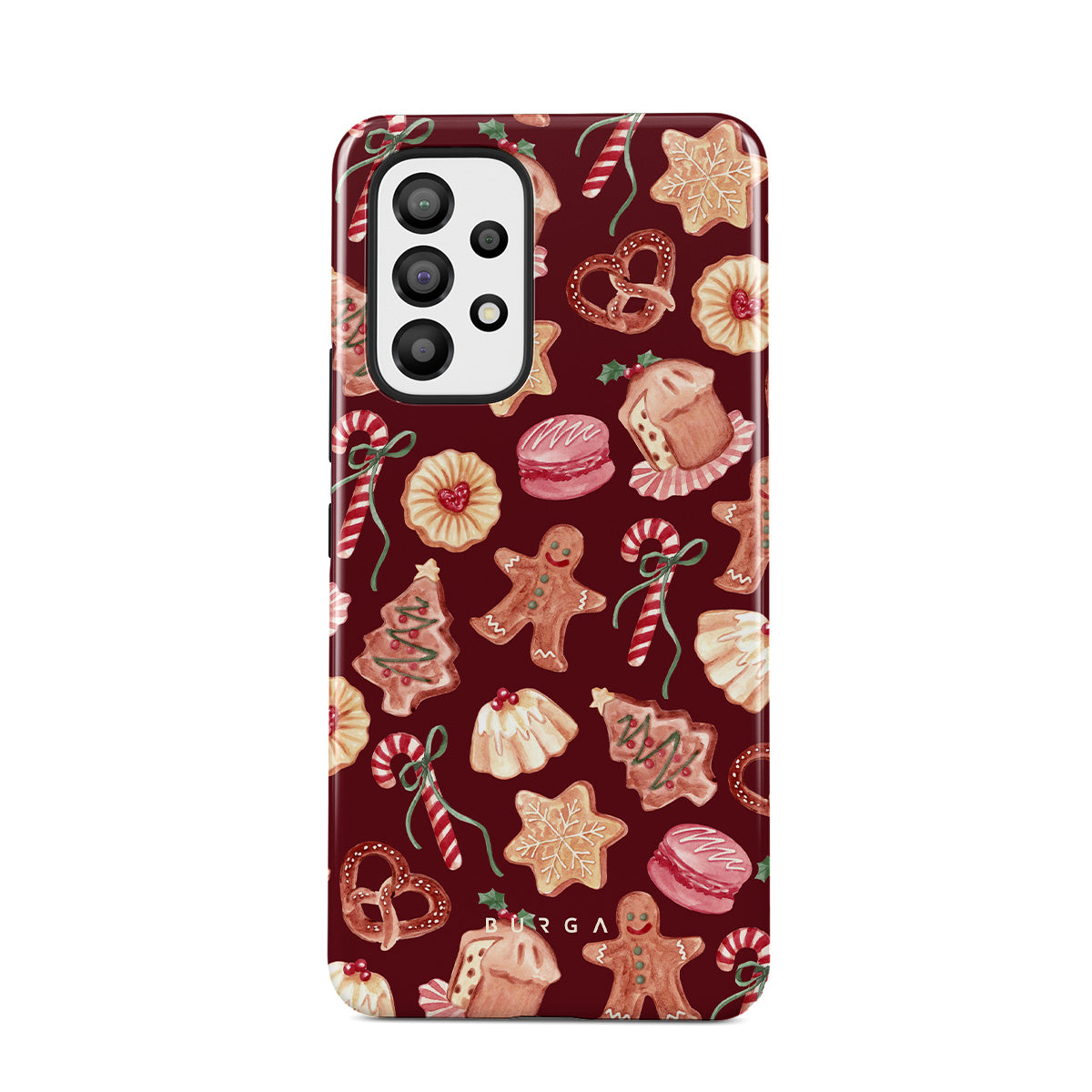 Typické pro tento motiv: vánoční sušenky, perníčky, cukrové hole, mátové bonbóny, sváteční sladkosti, burgundské červené pozadí