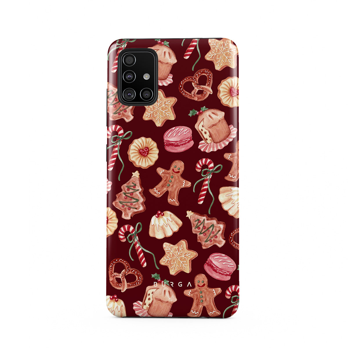 Typické pro tento motiv: vánoční sušenky, perníčky, cukrové hole, mátové bonbóny, sváteční sladkosti, burgundské červené pozadí