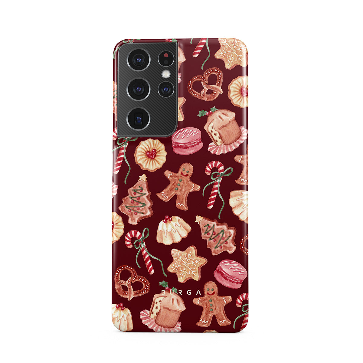 Typické pro tento motiv: vánoční sušenky, perníčky, cukrové hole, mátové bonbóny, sváteční sladkosti, burgundské červené pozadí