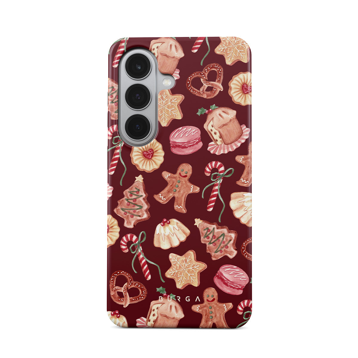 Typické pro tento motiv: vánoční sušenky, perníčky, cukrové hole, mátové bonbóny, sváteční sladkosti, burgundské červené pozadí