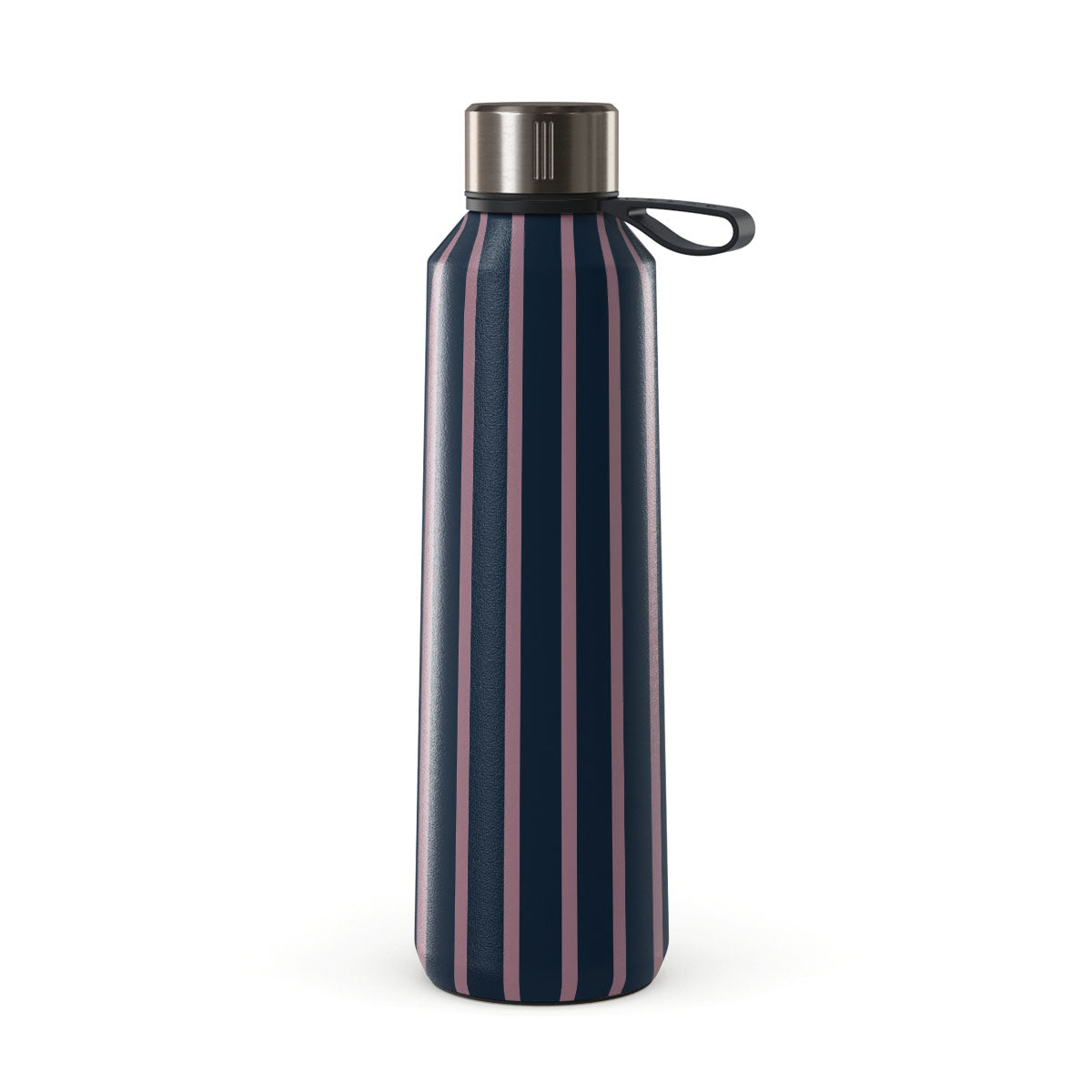 Chytré provedení: láhev disponuje měkkým gumovým poutkem kolem hrdla a protiskluzovou spodní stranou, díky které je stabilní.