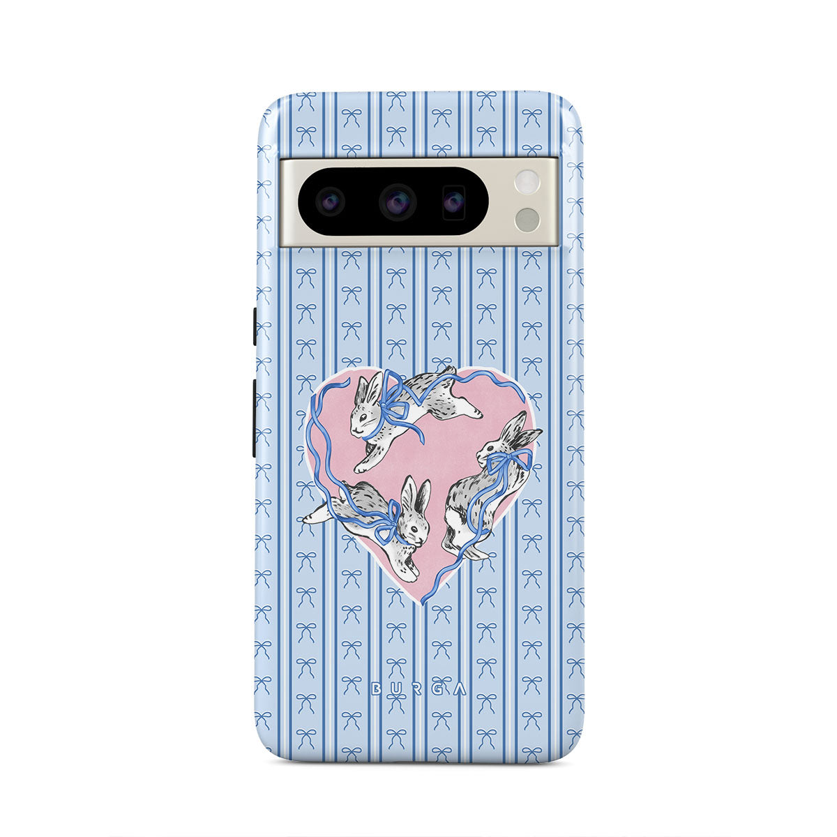 Typické pro tento motiv: bílí králíci, rám srdce, modré pruhy
