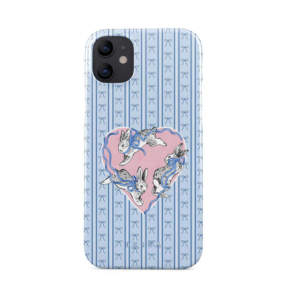 Typické pro tento motiv: bílí králíci, rám srdce, modré pruhy