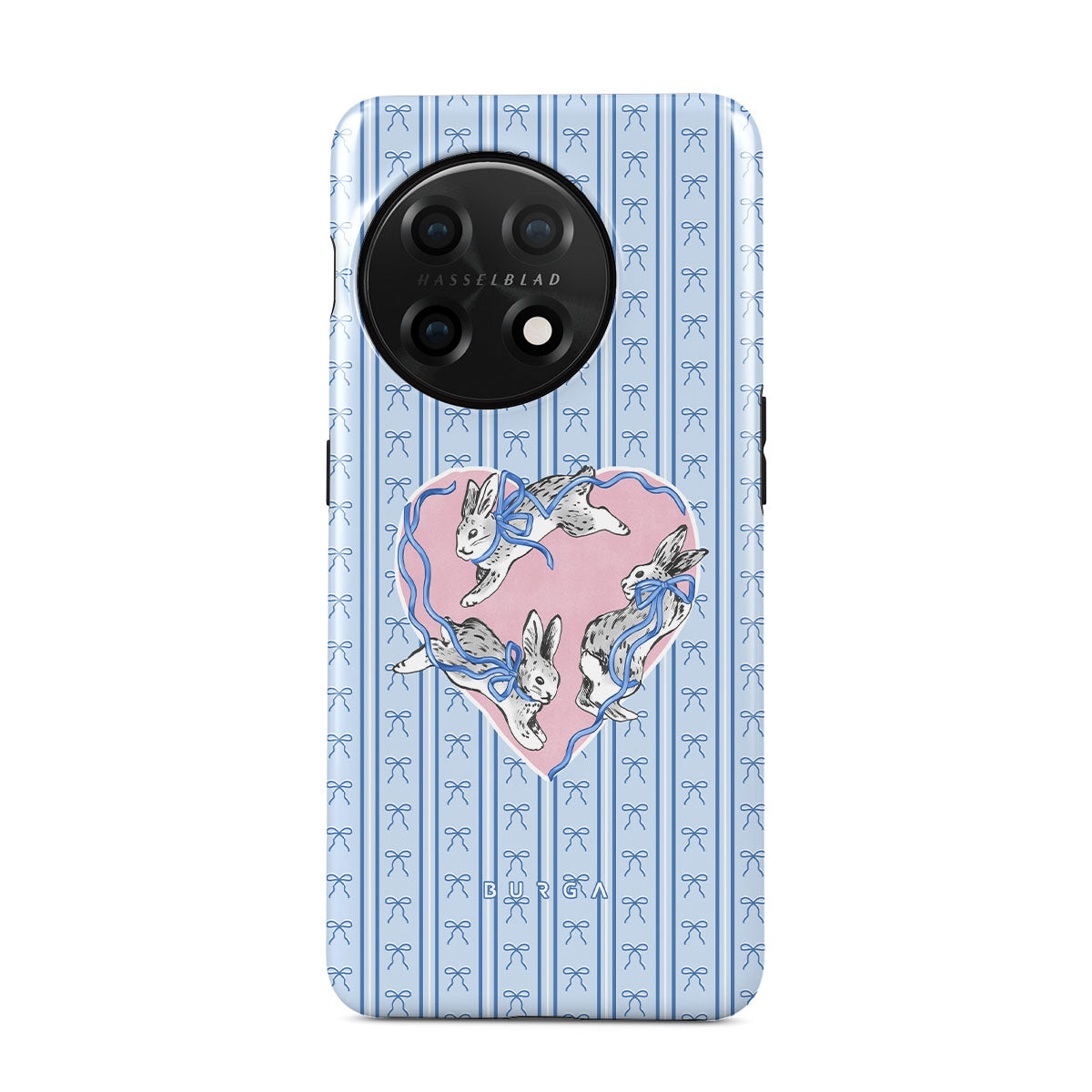 Typické pro tento motiv: bílí králíci, rám srdce, modré pruhy
