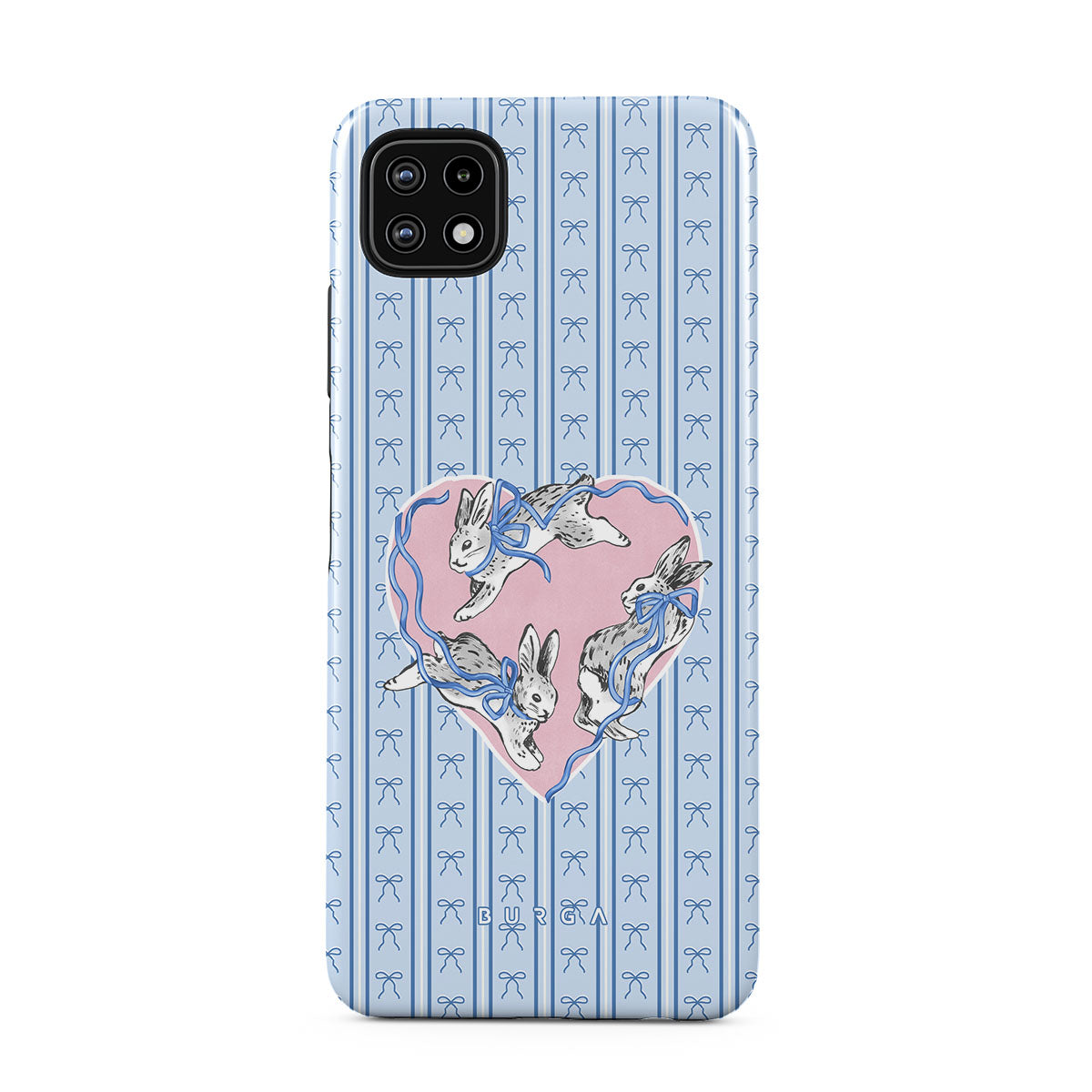 Typické pro tento motiv: bílí králíci, rám srdce, modré pruhy