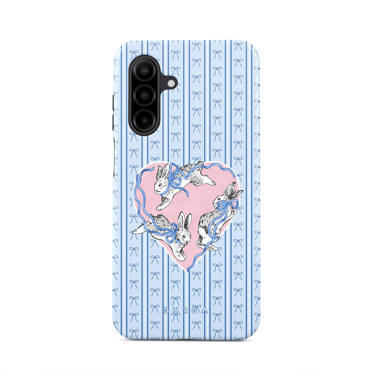 Typické pro tento motiv: bílí králíci, rám srdce, modré pruhy