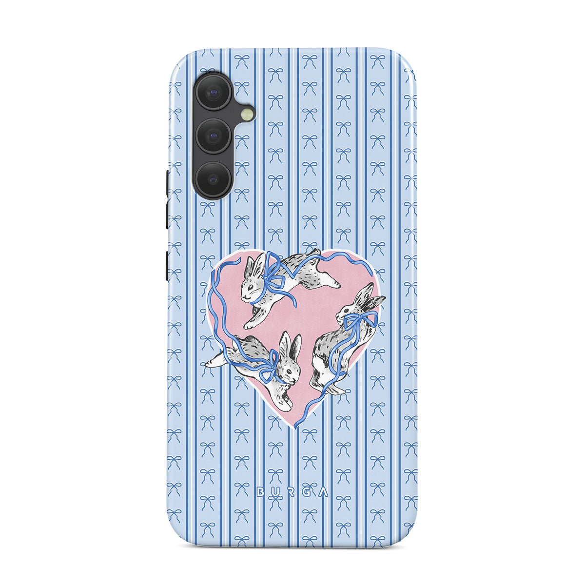 Typické pro tento motiv: bílí králíci, rám srdce, modré pruhy