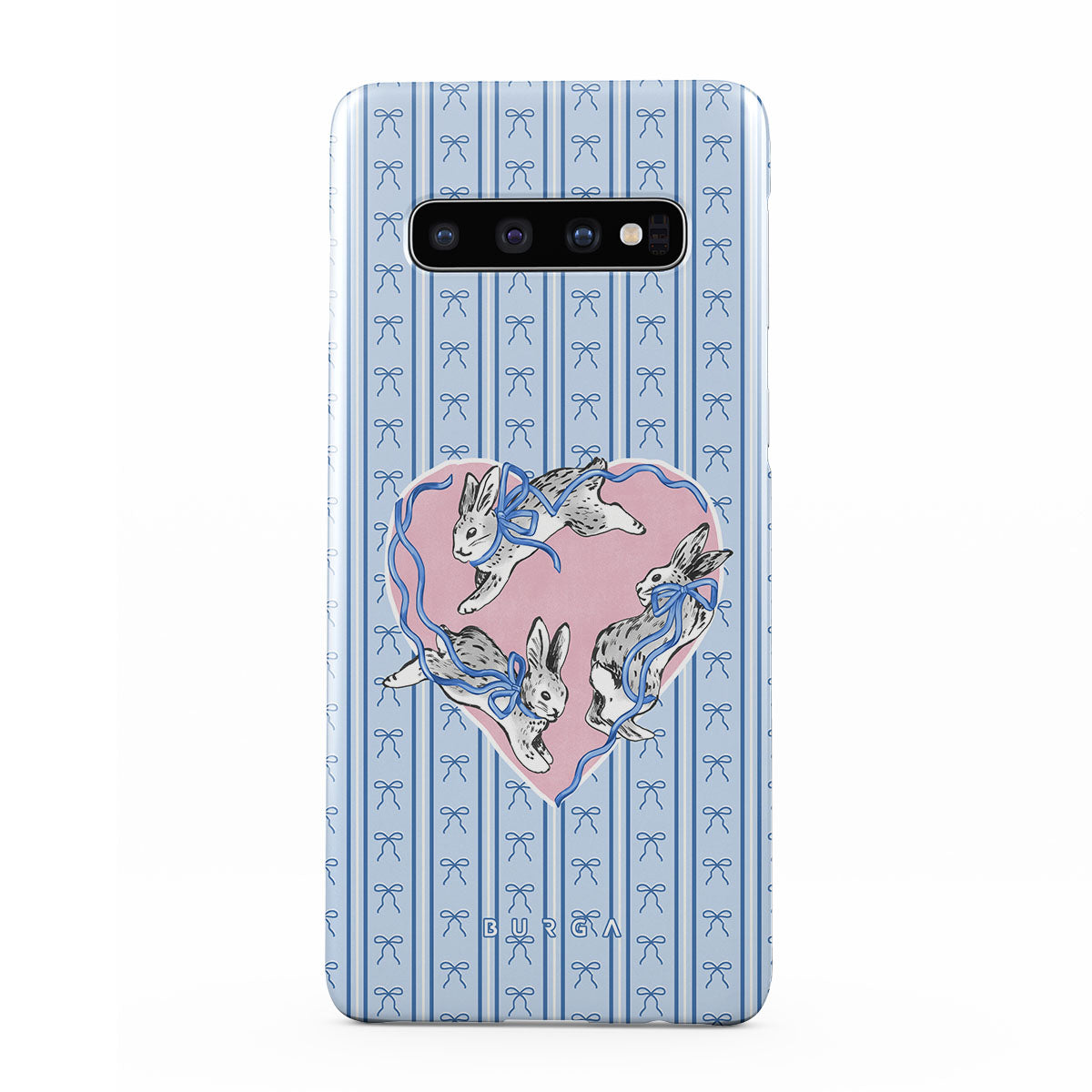 Typické pro tento motiv: bílí králíci, rám srdce, modré pruhy