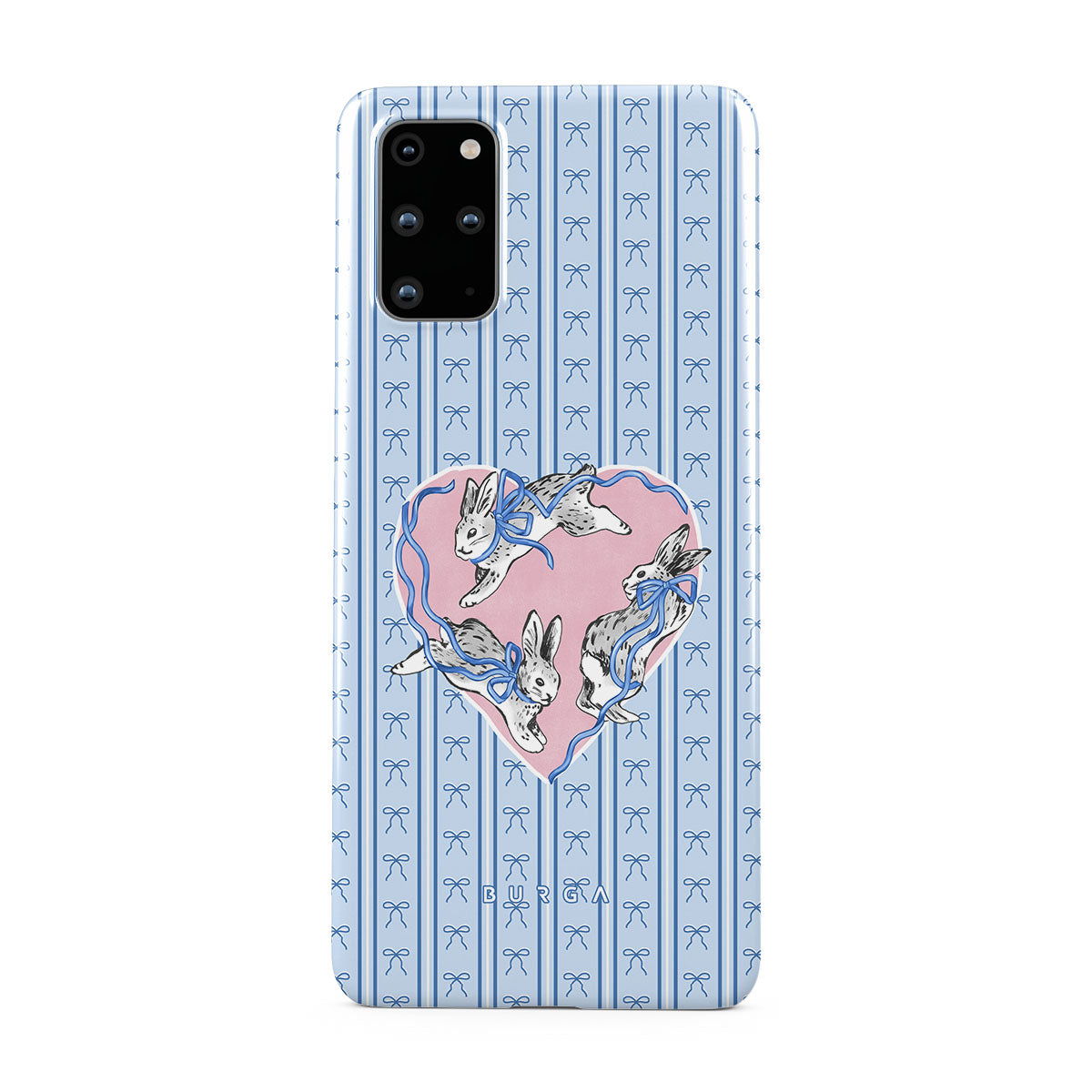 Typické pro tento motiv: bílí králíci, rám srdce, modré pruhy