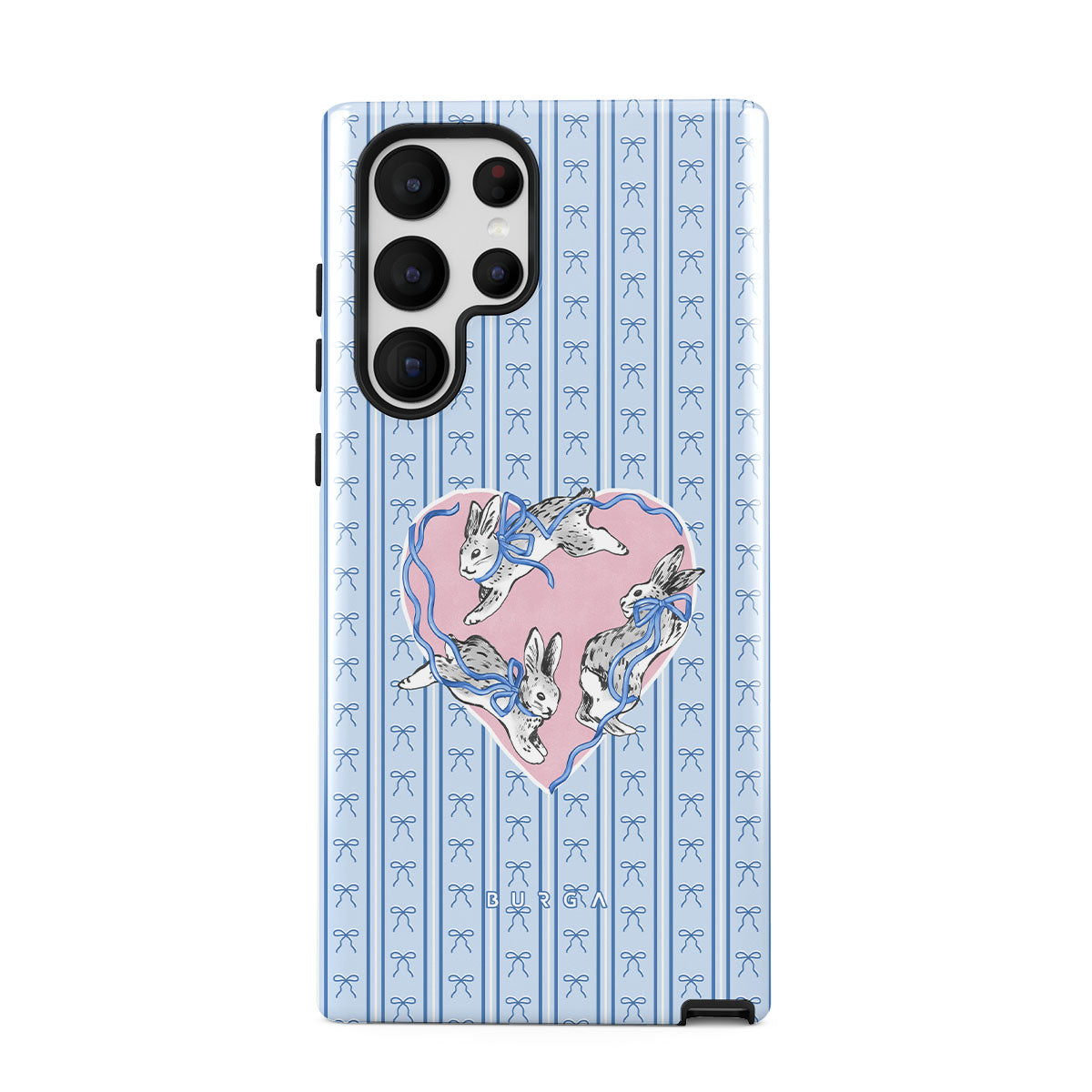 Typické pro tento motiv: bílí králíci, rám srdce, modré pruhy