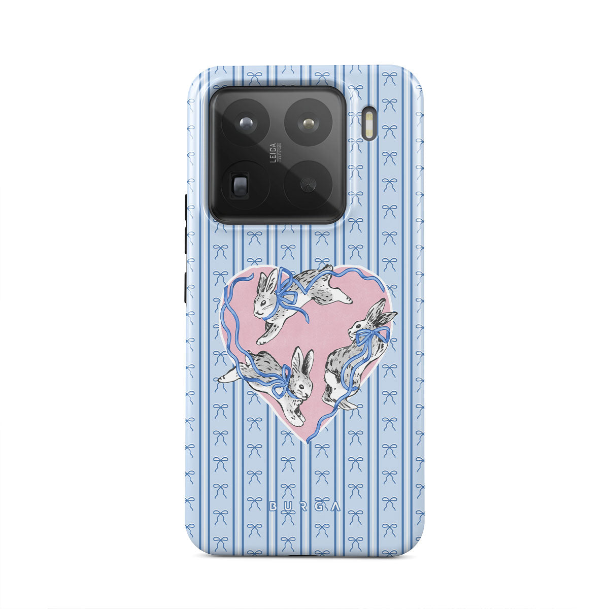 Typické pro tento motiv: bílí králíci, rám srdce, modré pruhy