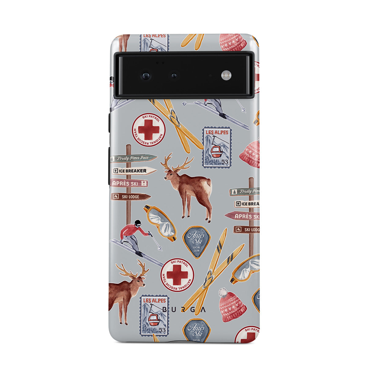 Typické pro tento motiv: vintage lyžařský plakát, retro lyžařské středisko, ilustrace soba, design lyžařského vleku, alpský vzor, zimní sporty, klasický styl lyžařské chaty, horské resortní grafiky