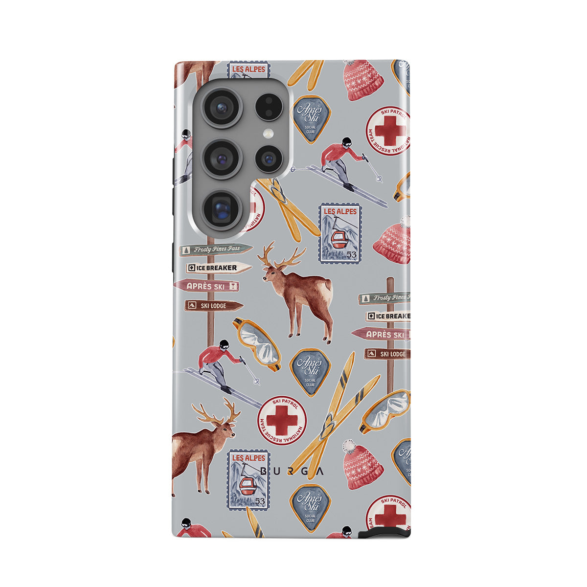 Typické pro tento motiv: vintage lyžařský plakát, retro lyžařské středisko, ilustrace soba, design lyžařského vleku, alpský vzor, zimní sporty, klasický styl lyžařské chaty, horské resortní grafiky