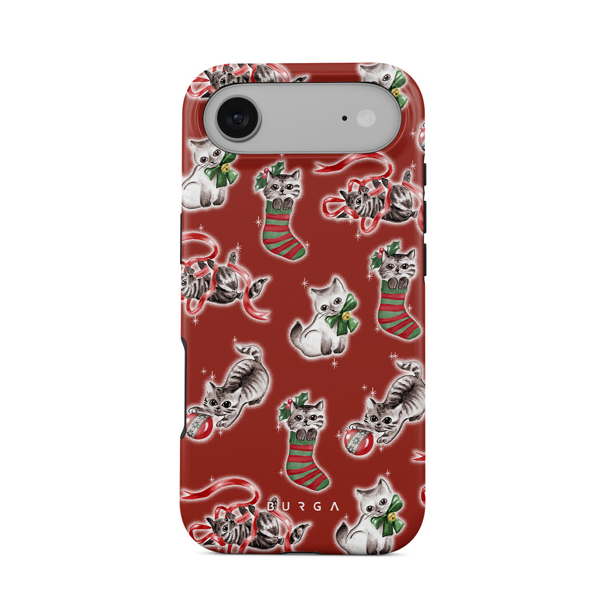 Typické pro tento motiv: kočky, vánoční punčochy, koťata, červený a zelený vzor, hravé kočky, vánoční ozdoby