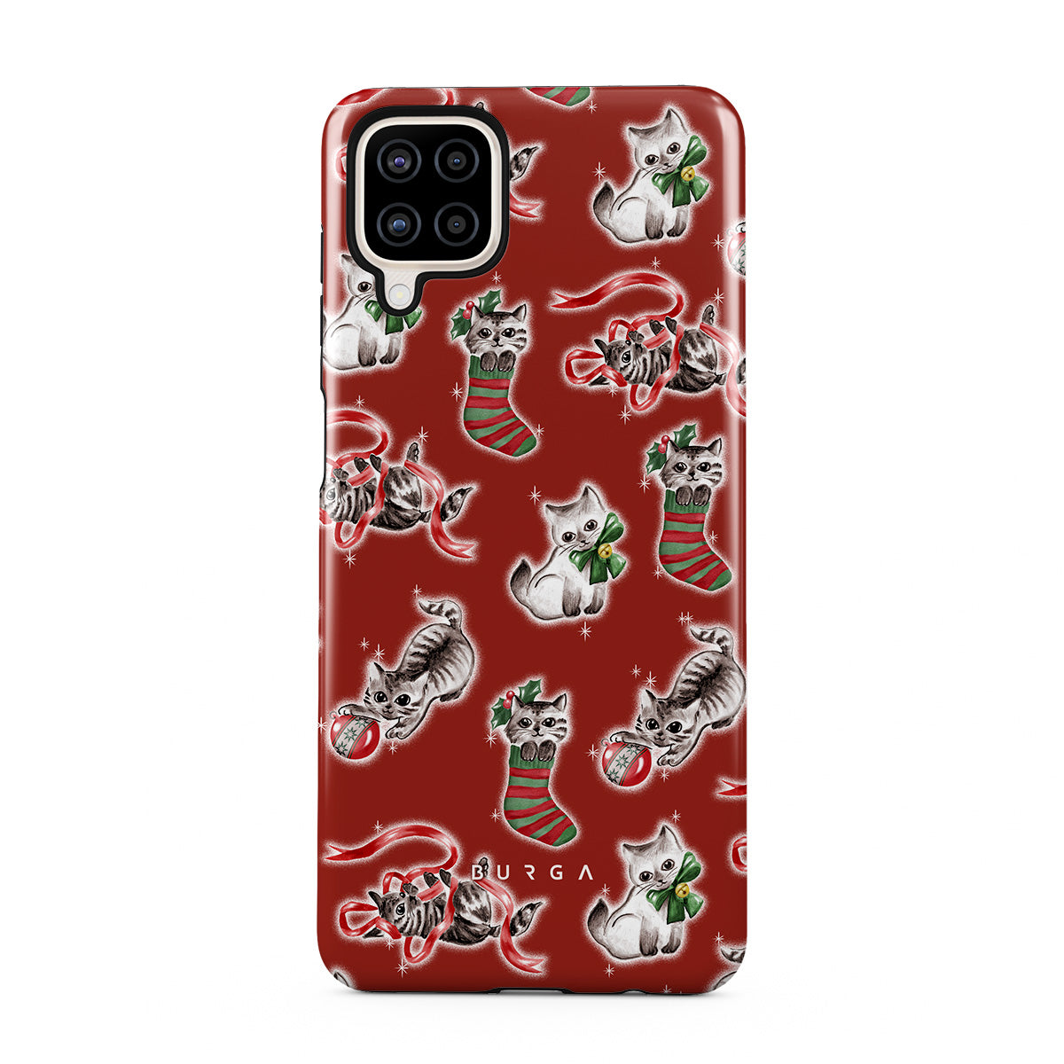 Typické pro tento motiv: kočky, vánoční punčochy, koťata, červený a zelený vzor, hravé kočky, vánoční ozdoby