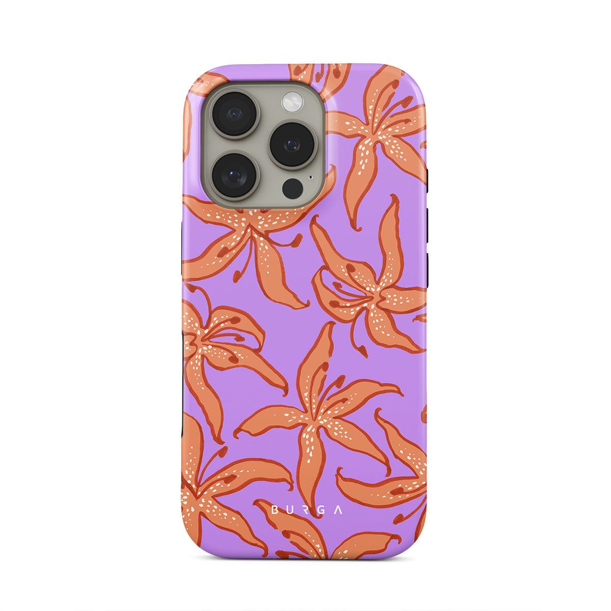 Typické pro tento motiv: oranžové lilie, fialové pozadí.
