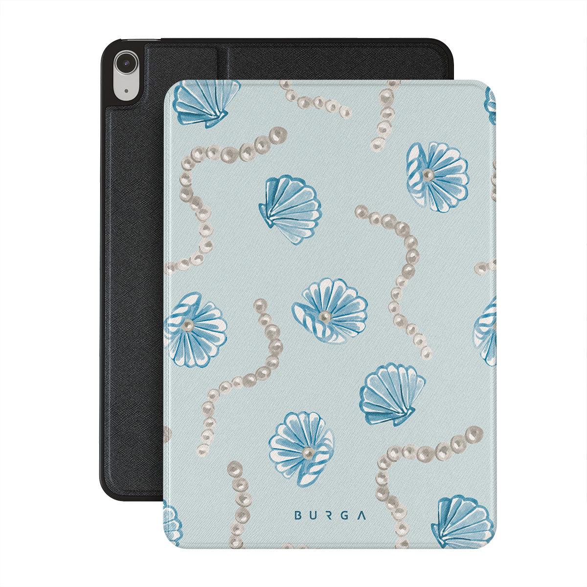 Typické pro tento motiv: perly, lastury, světle modré pozadí, mořské prvky.