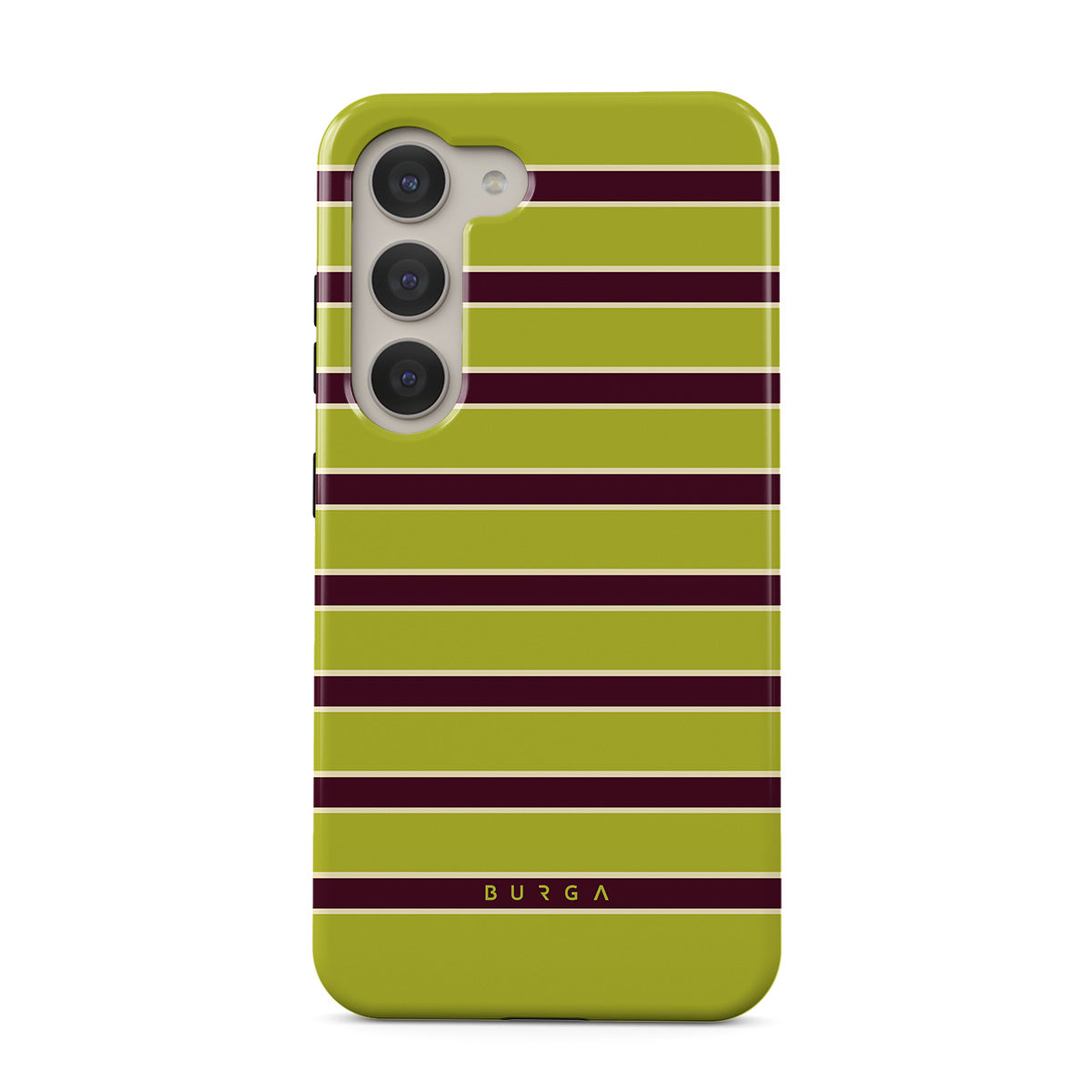 Typické pro tento motiv: silné vodorovné pruhy v limetkově zelené a bordó barvě.