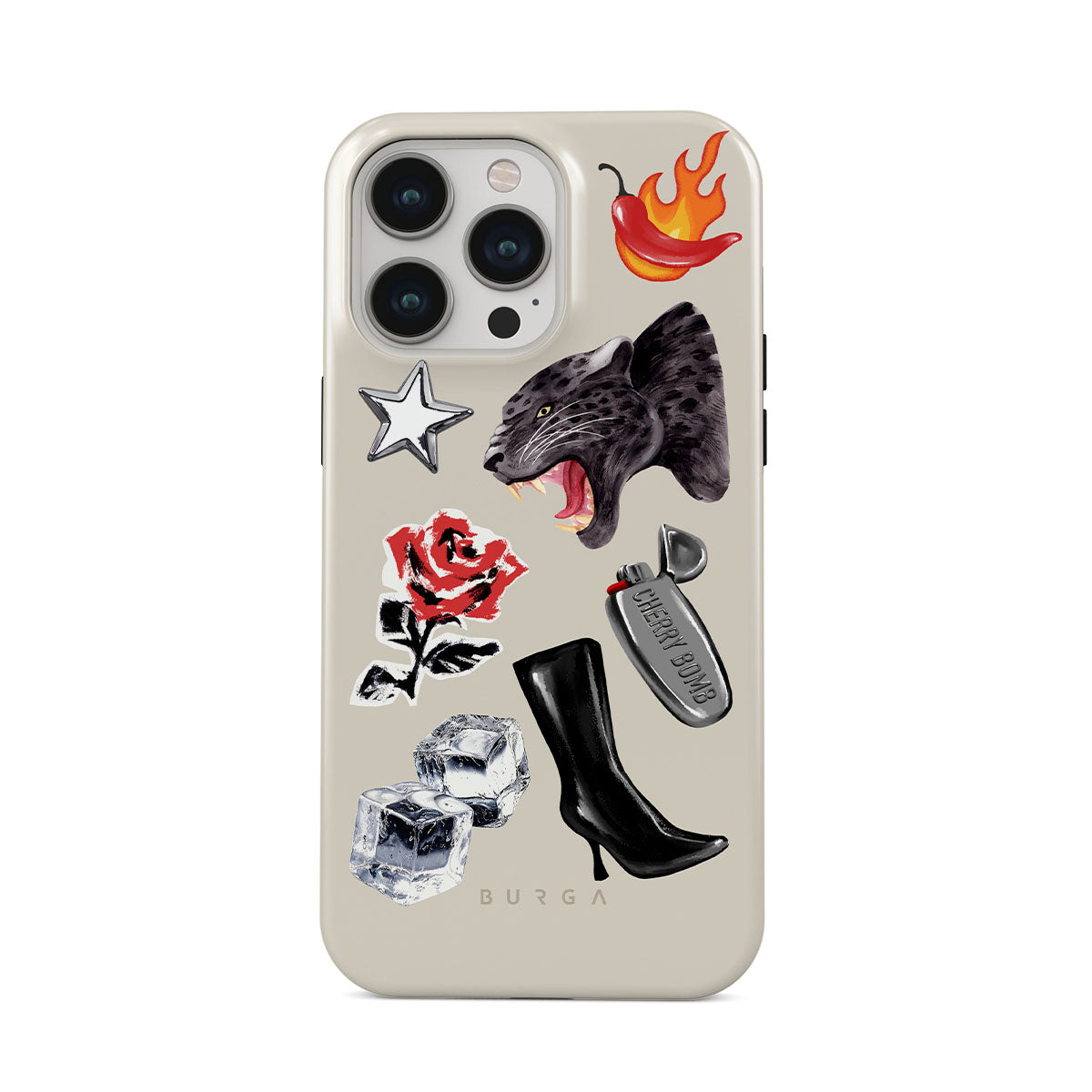 Typické pro tento motiv: černého pantera, červenou růži, hořící papriku, stříbrný zapalovač, vysoké černé boty, kostky ledu, stříbrnou hvězdu.