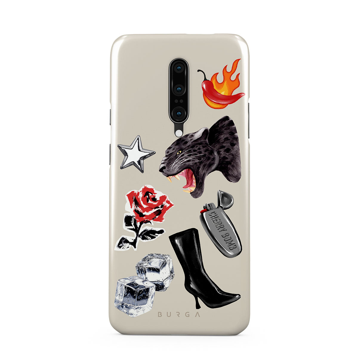 Typické pro tento motiv: černého pantera, červenou růži, hořící papriku, stříbrný zapalovač, vysoké černé boty, kostky ledu, stříbrnou hvězdu.